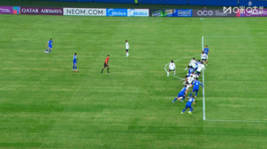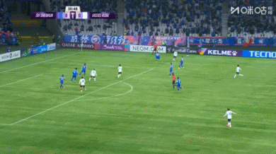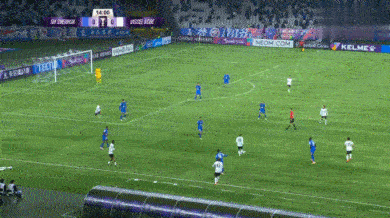 第11分钟,申花前场定位球机会,吴曦禁区右侧扫回门前,路易斯头球攻门被门线解围↓