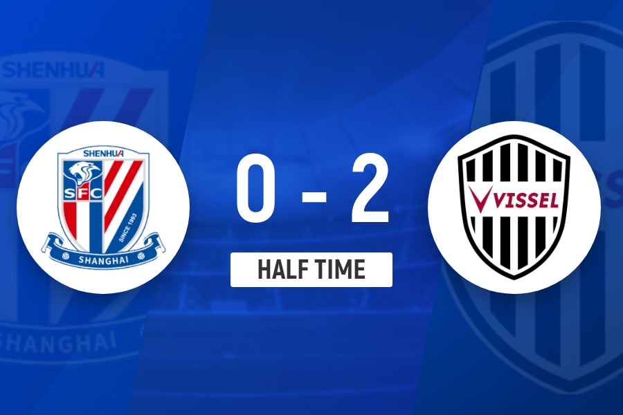 直播吧11月26日讯亚冠精英联赛东亚区第5轮上海申花坐镇主场上海体育场迎战神户胜利船。上半场,路易斯失良机,阿苏埃远射中框,井手口阳介、山川哲史破门。半场战罢,申花0-2神户胜利船。
