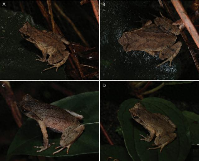 据研究团队描述,阳春角蟾体型娇小,但其形态特征独具一格。当其后肢折叠时,脚跟可以相互接触;从背面观察,其吻部呈尖出状。尤为特别的是,在繁殖期间,雄性成体的第一、二指背侧基部长有婚垫,上面密布着细小的婚刺,这是其重要的繁殖特征。