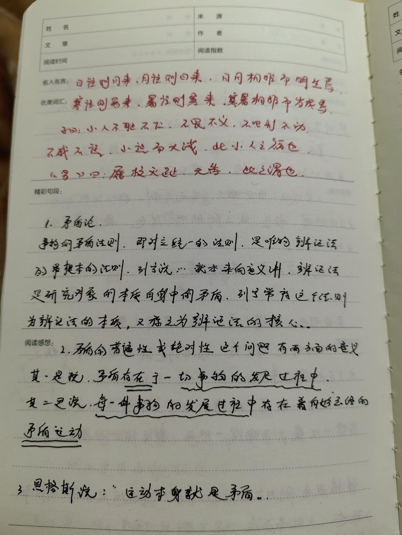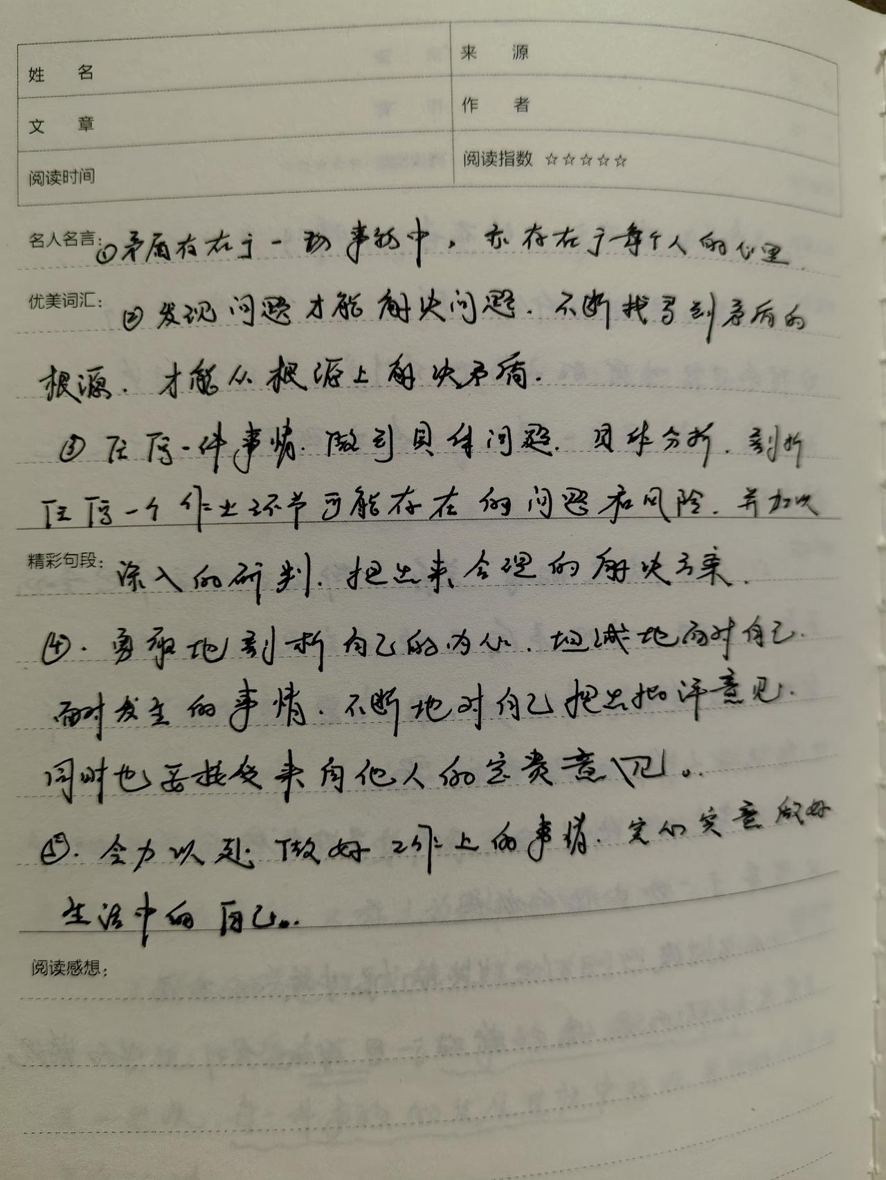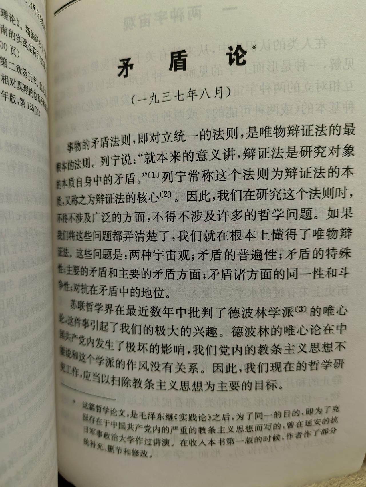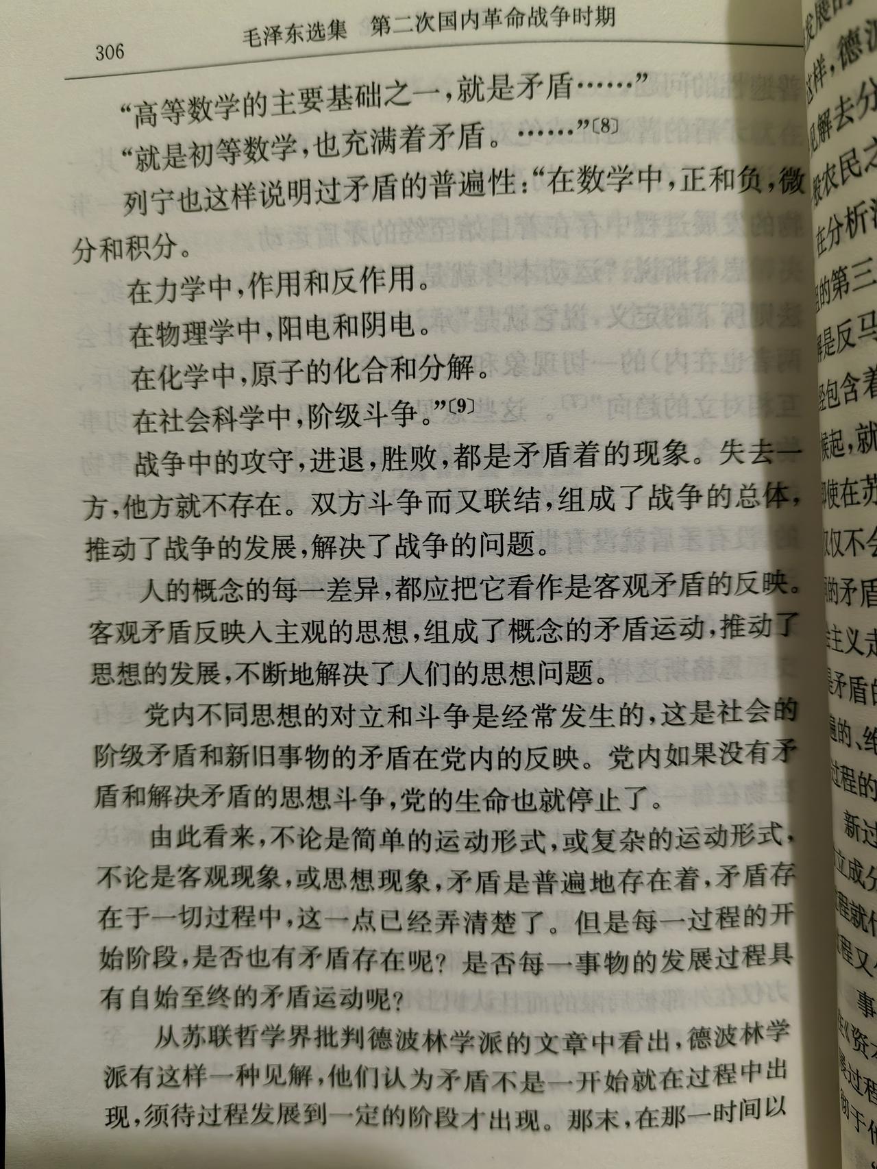 关于读毛选节选签章《矛盾论》的若干感悟和对工作的若干思考 1.矛盾存在于一切事物中,亦存在于每个人的心里。 2.发现问题,才能解决问题,发现矛盾,才能解决矛盾,不断找寻到矛盾的根源,才能从根源上解决矛盾。 3.任何一件事情,做到具体问题具体分析,剖析任何一个作业环节可能存在的问题和风险,并加以深入的研判,提出来合理的解决方案。 4.勇敢地剖析自己的内心,坦诚的面对自己,面对发生的事情,不断地对自己提出批评意见,同时也要接受来自他人的宝贵意见。 5.全力以赴做好工作上的事情,实心实意做好生活中的自己。