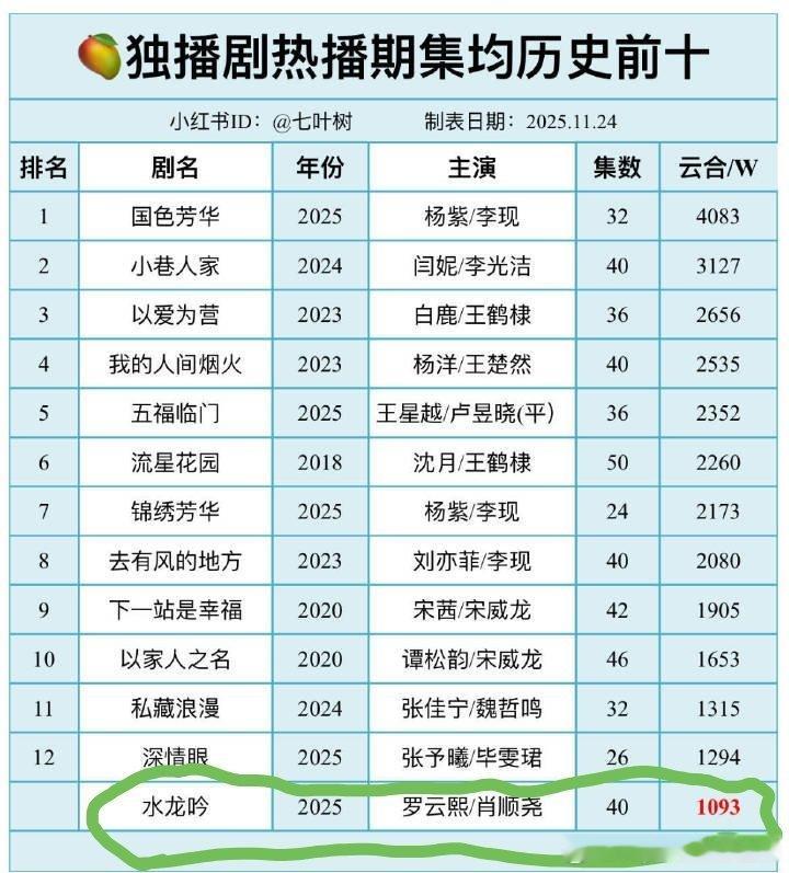 芒果史冠《水龙吟》云合集均1000万居然敢和云合集均5000万的《国色芳华》争芒果史冠,这完全是梁静茹给的勇气,第一次看到这么会自嬷的粉圈,不知道从哪里弄个猫眼这样的野榜吹,掩耳盗铃 揠苗助长成语走进现实了,剧扑就想废榜云合,天天喊着云合水,那人家《太奶奶》和《乖乖女》咋40多亿云合播放量,短剧总不会去买云合吧!