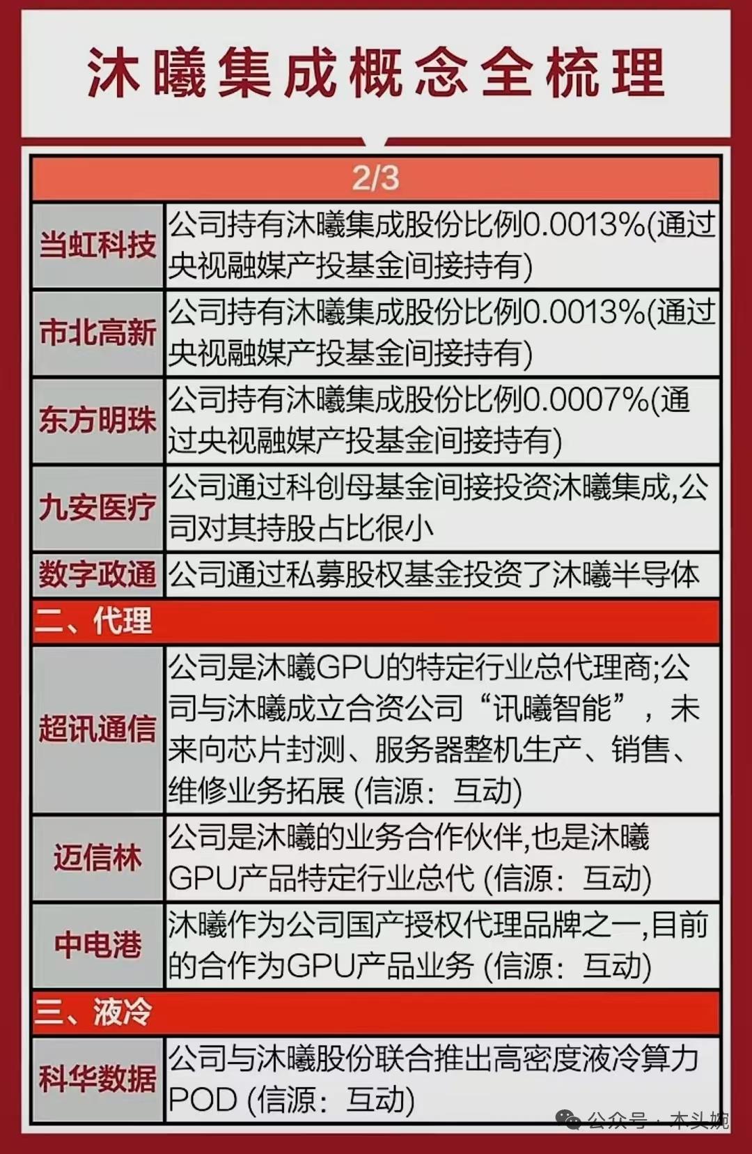沐曦集成上市利好概念! 11月26日,沐曦股份公布科创板上市发行安排拟发行4010万股,12月2日开展初步询价,12月5日开启申购。这是其IPO进程的关键节点,距离此前获证监会注册仅半月。沐曦集成上市受益的公司代表:超讯通信、中科蓝讯、中山公用、七匹狼等等。 七匹狼:國內领先男装品牌,七匹狼集团通过旗下平台参与了沐曦集成的C轮融资,间接持有其0.39%的股份。(福建概念+沐曦集成概念) 中山公用:国有控股的环保水务龙头企业,公司与沐曦集成是持股+业务协同的双重关系,直接持有其85.43万股,占发行前总股本的0.24%。(國企改革概念+沐曦集成概念) 理财有风险入市需谨慎,资料取材网络仅供参考。