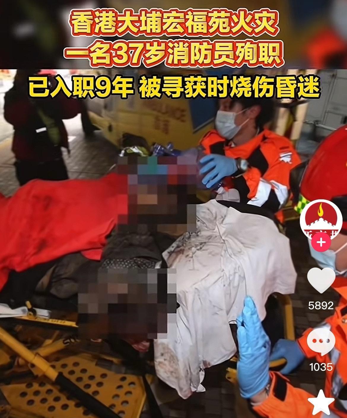 看到了吗, 这就是我们中国的消防员, 火灾来临的时候,他们永远是第一个冲在前面的人,可以不顾性命的救人于危难之中! 今天香港大埔的火灾,火势蔓延太快了,火灾已经升级到5级了! 消防员的救援工作也很困难,但是他们却从来不怕,想尽一切办法救被困的人! 其中一位消防员不幸牺牲了,全身被熏黑了,送到医院也没有救回来。37岁入职9年,正是最好的年纪, 想到前段时间洛杉矶的那场大火,烧了一整座山和富人区,但是他们却没有消防员去救援。 关键时刻我们的祖国,消防英雄都在努力着!向他们致敬!