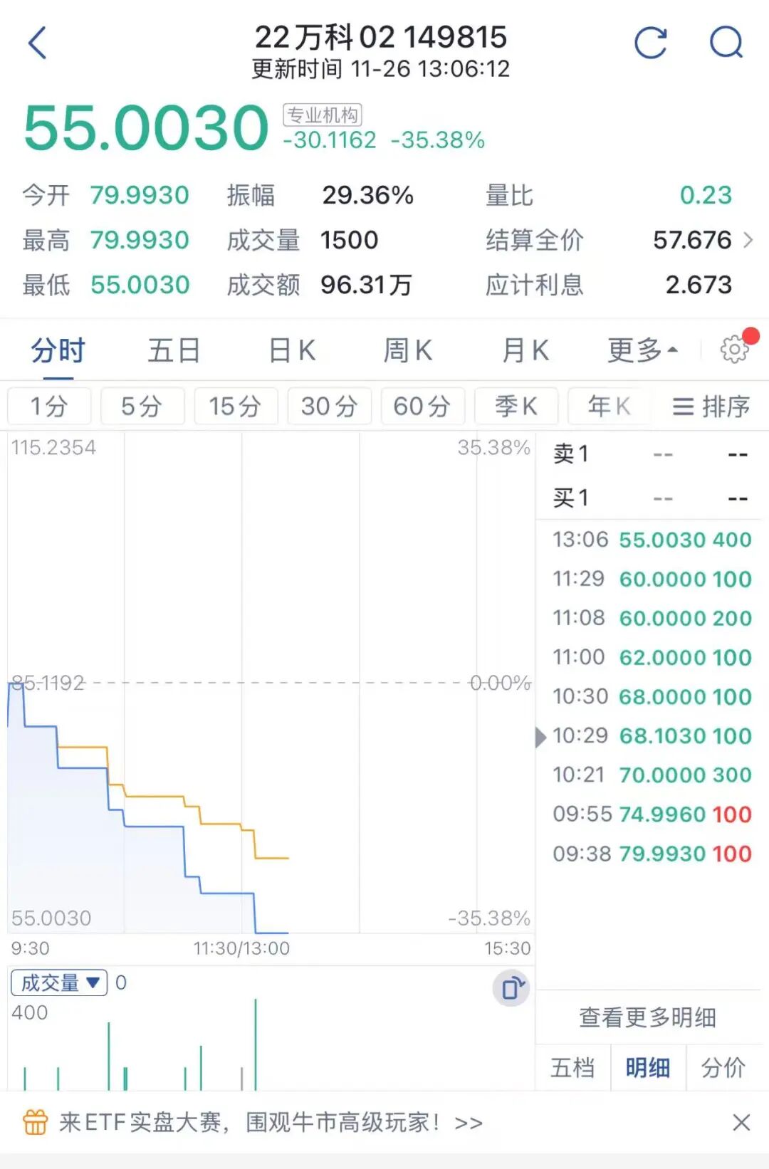 其他万科债如“21万科04”也一度暴跌30%,盘中临时停牌;“21万科06”最高跌26%,“21万科02”最高跌20%,“22万科04”最大跌超26%,都触发临停。今天万科A股也跌了2.5%,并带动多只房地产股票下跌。