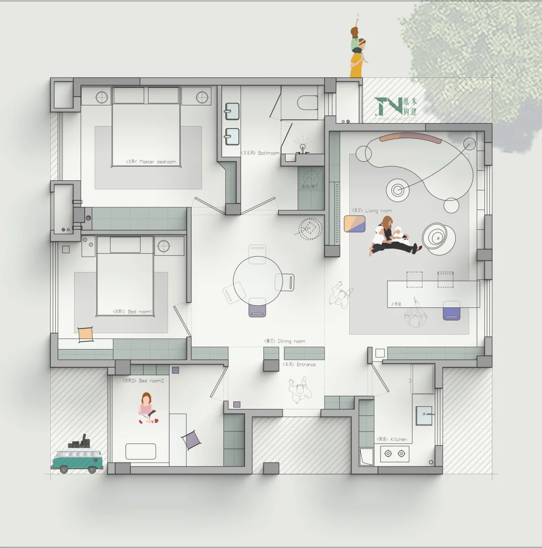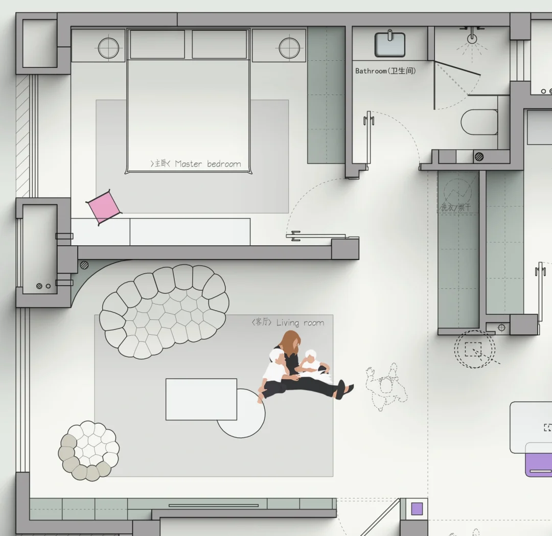 我必须说,半边公,半边私,才是一张美得超级有辨识度的户型,302㎡拥有独一无二的