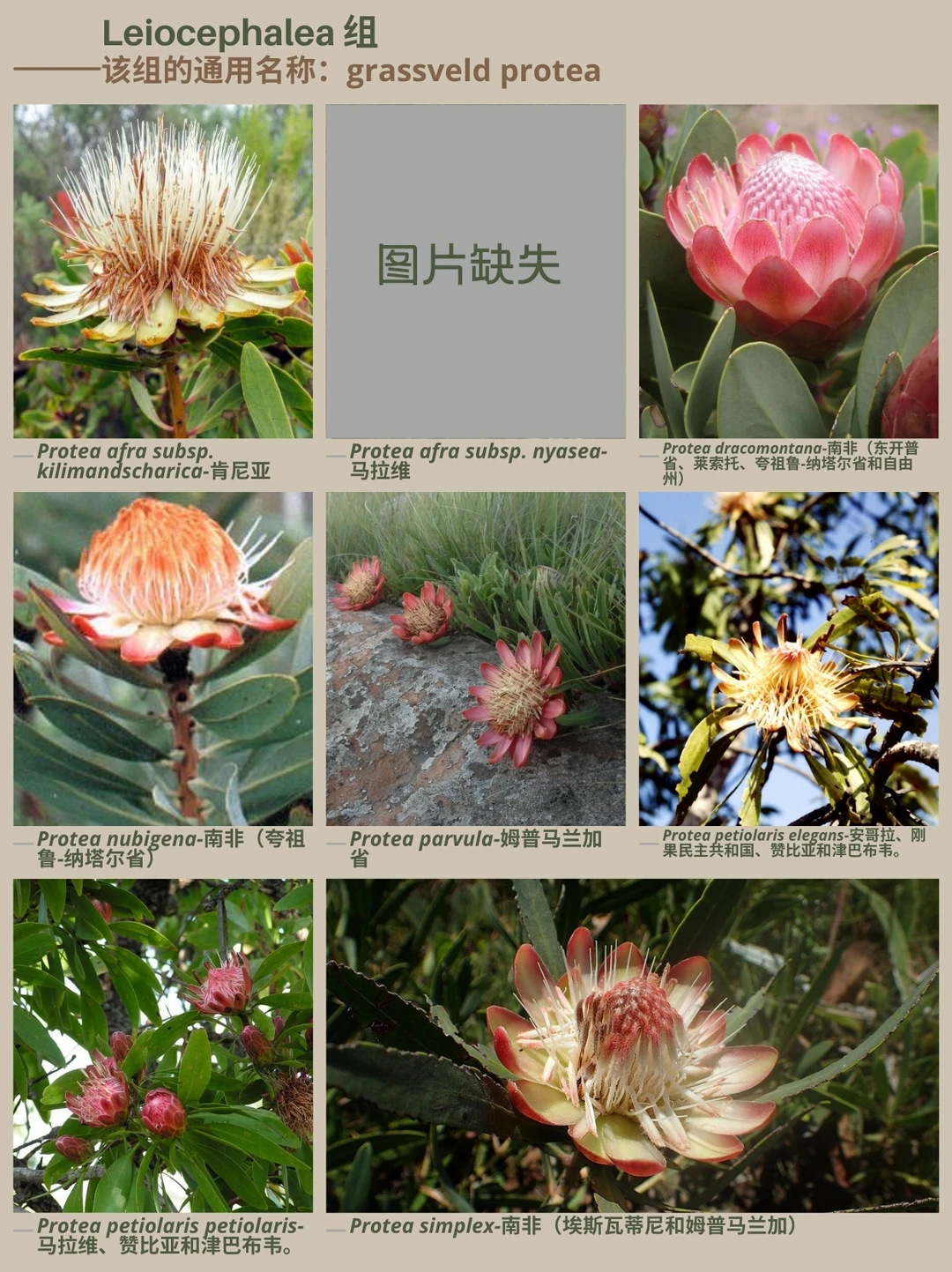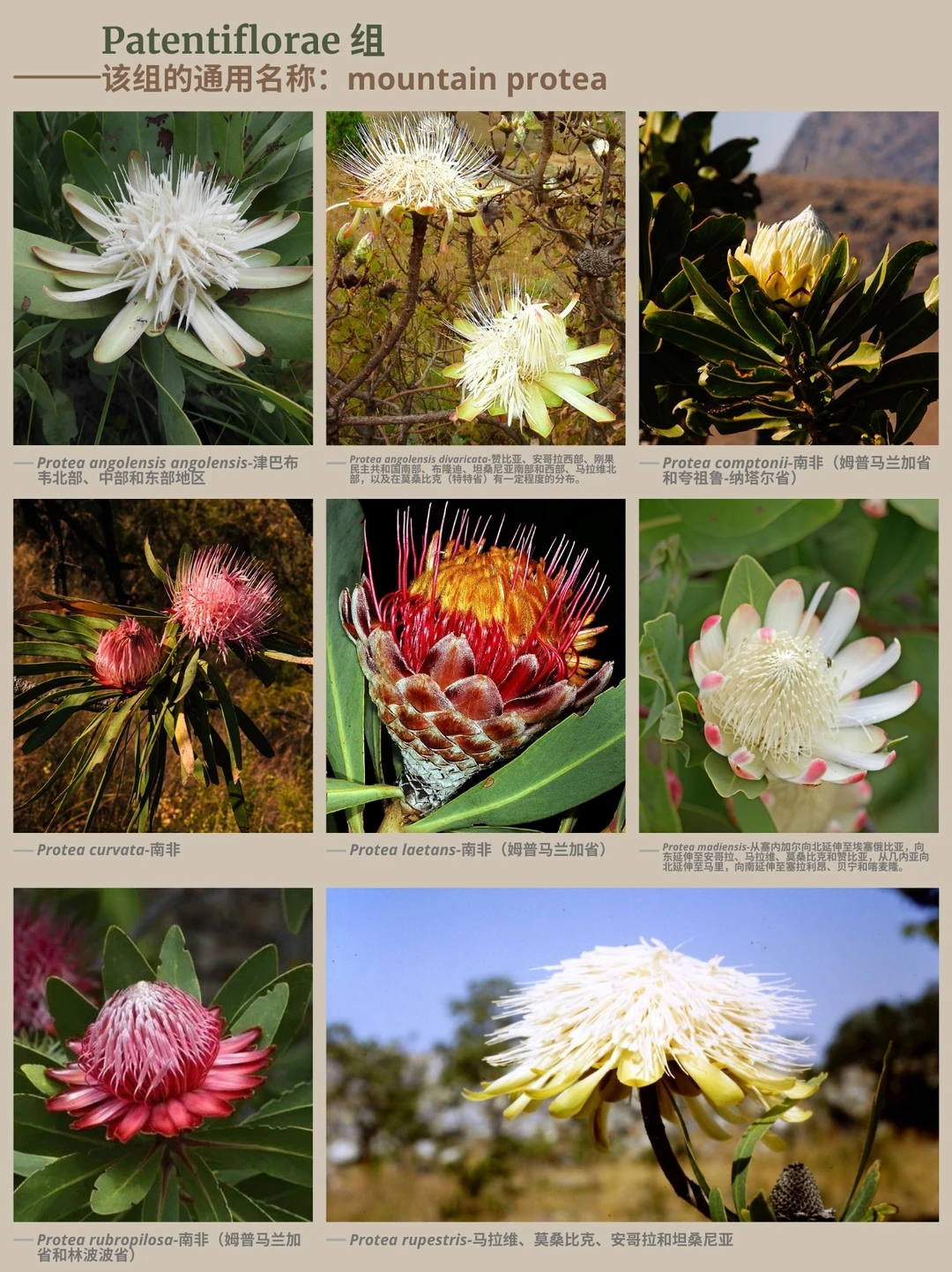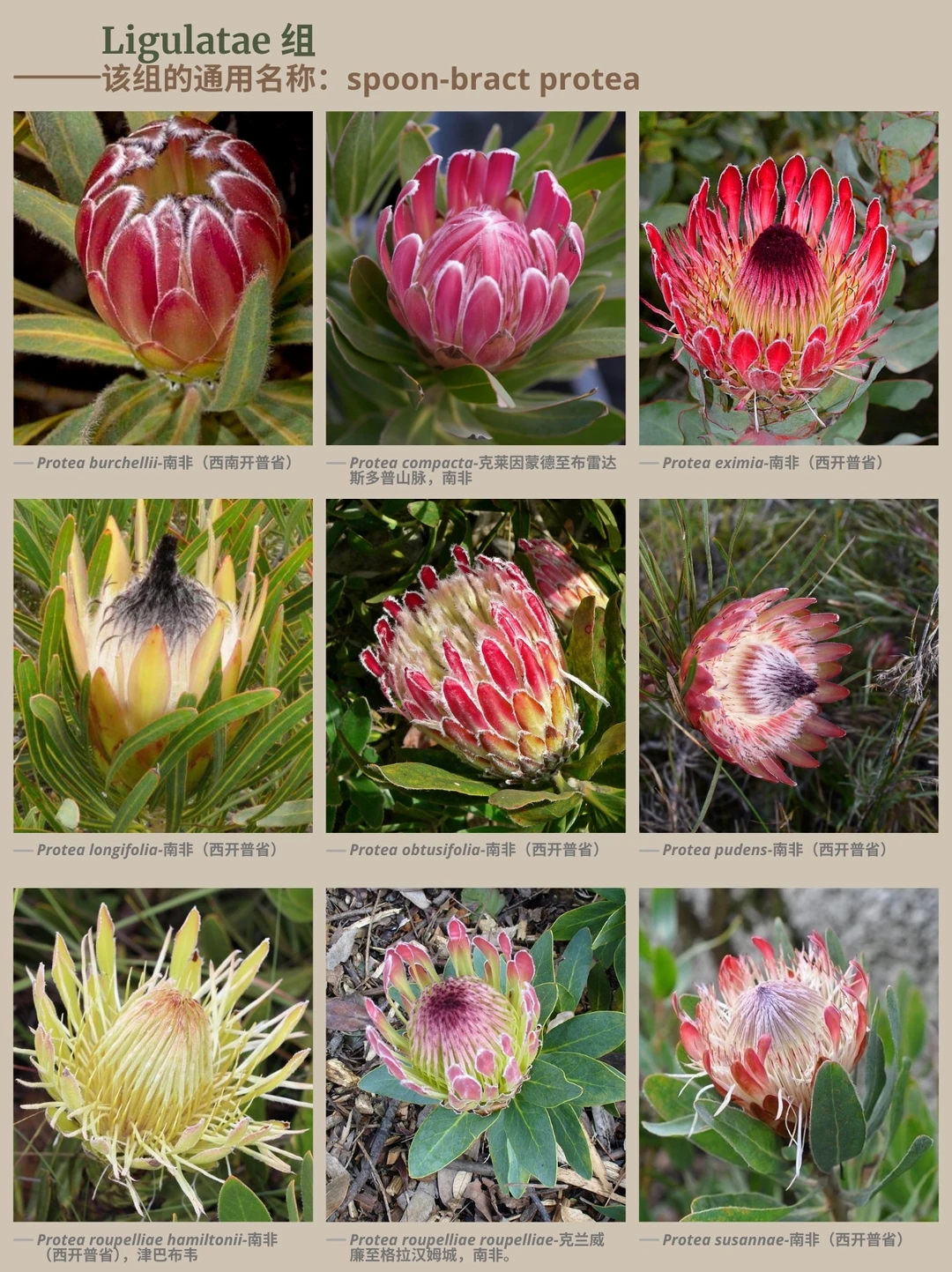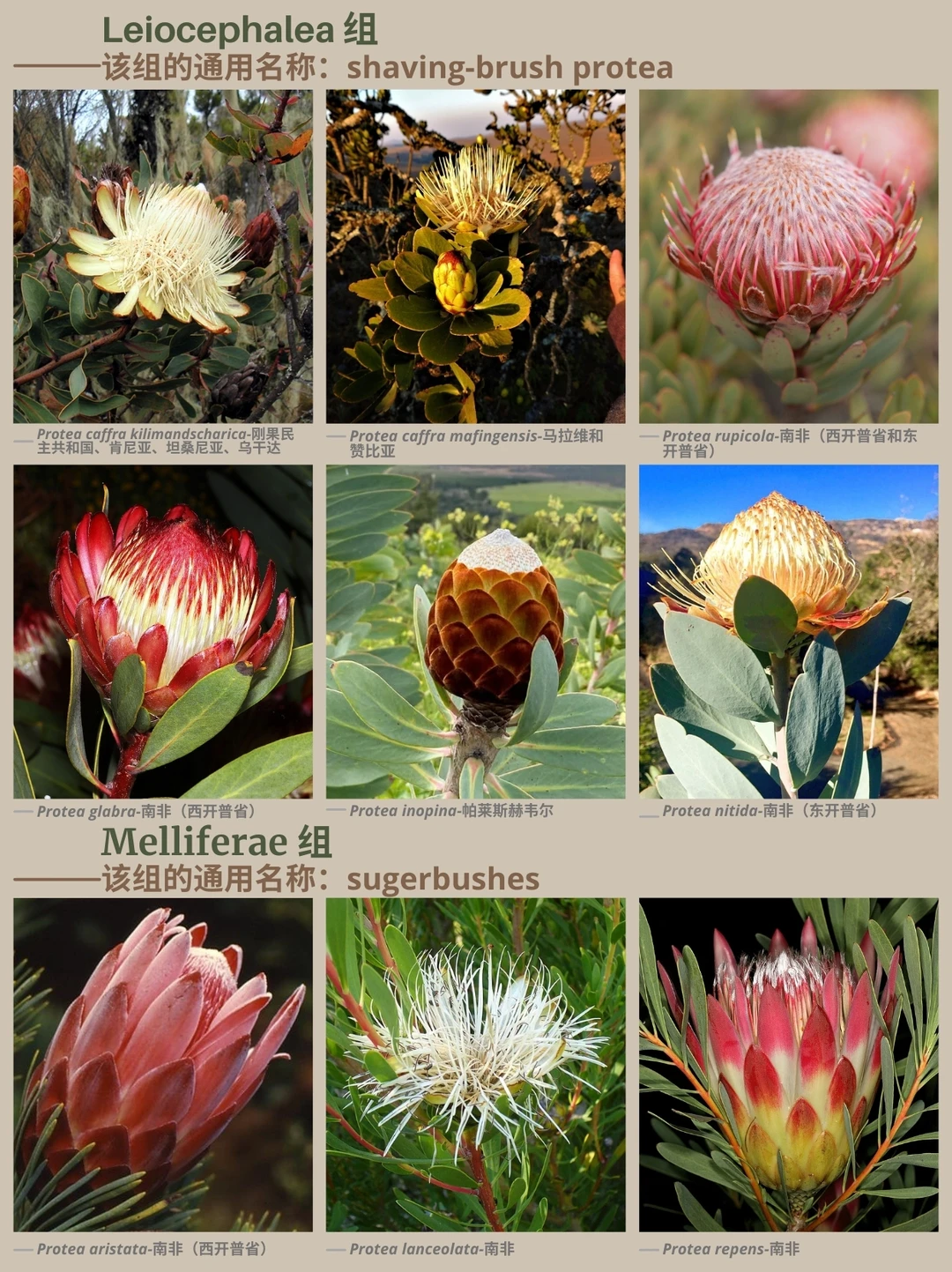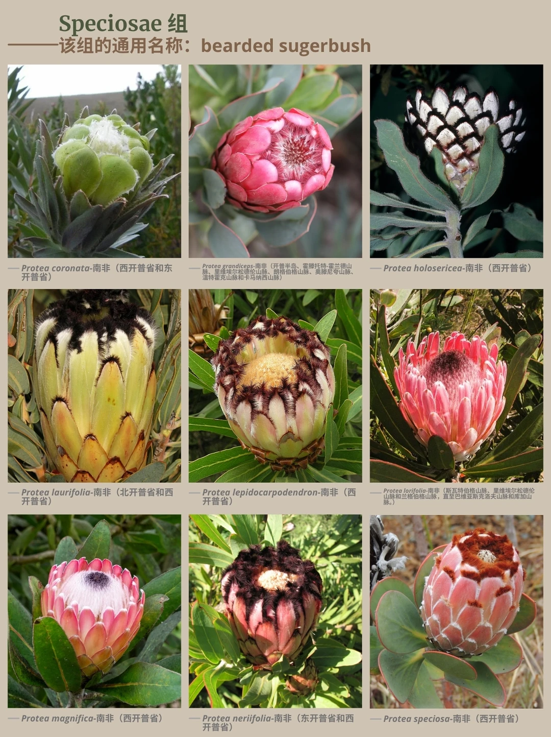帝王花 山龙眼科 Protea Proteaceae 山龙眼科 花园植物 切花植物 南非 盆栽 干花 本图册为山龙眼科帝王花属常见品种图集含物种学名及分布区域。