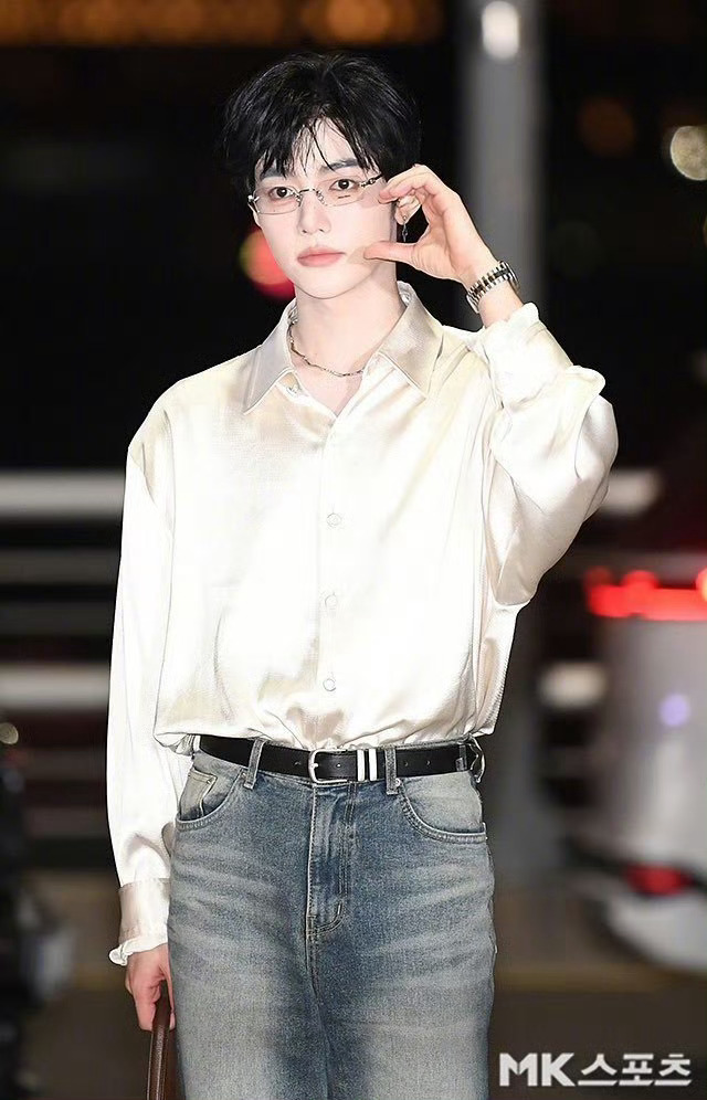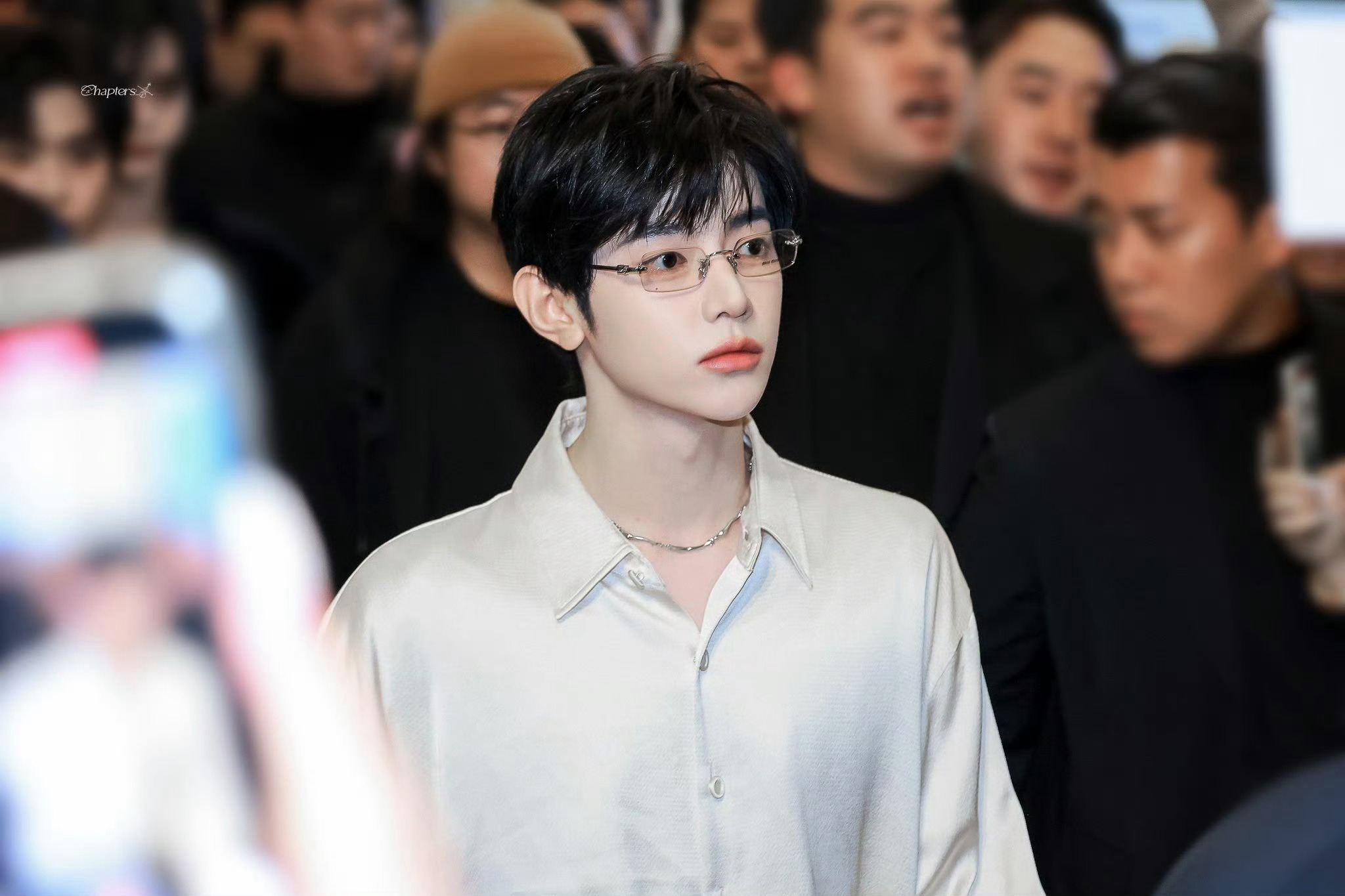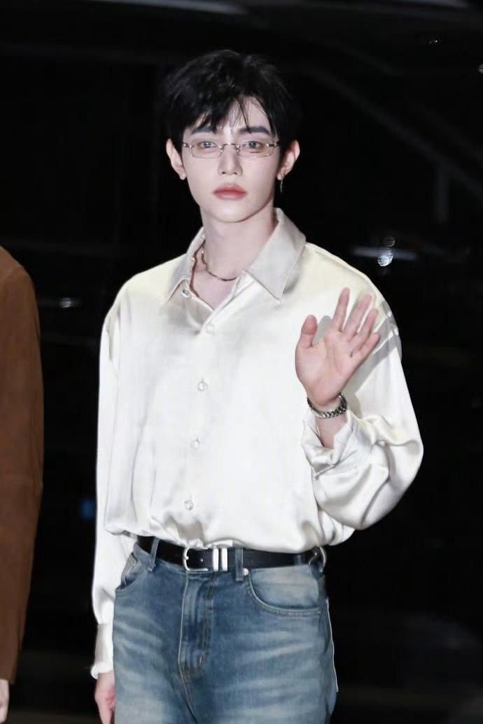 章昊最新机场造型图,绸缎衬衫加眼镜完全禁欲系