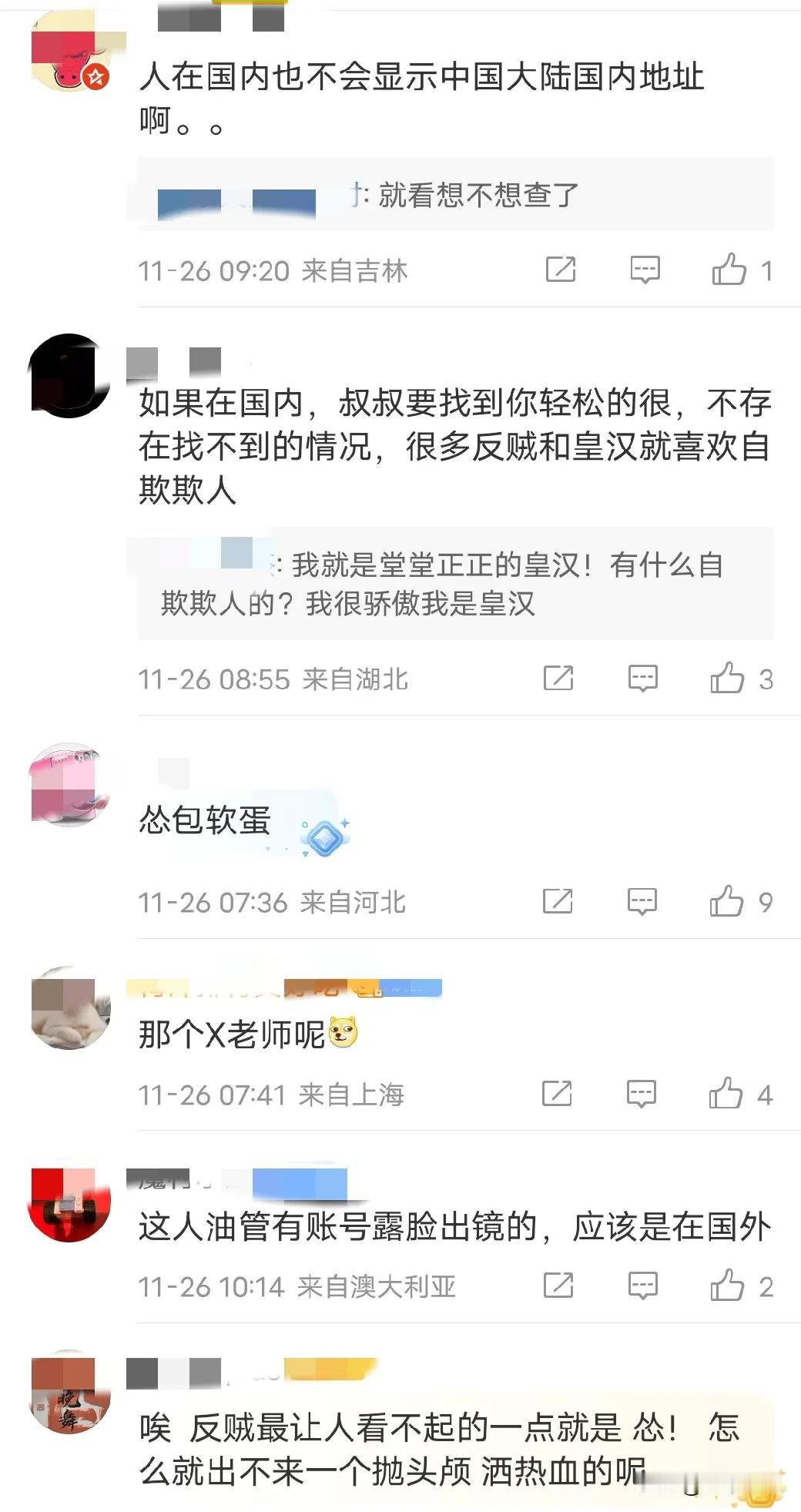 马斯克开放IP地址显示,有著名公知火速删号,因为这个著名公知在外网的中文互联网极有影响力,很多人以为它应该在国外,没想马斯克放开当天,它删号了,网友猜测为什么显示IP地址就要删号,估计它是体制内的,怕被人顺藤摸瓜找到了,那工作估计就没了,要不然为什么要删号?本来在外网中文互联网有一定影响的力的话,流量不少的,收入不会少的,肯定是国内的工作的收入更多,才会舍弃这个号的!