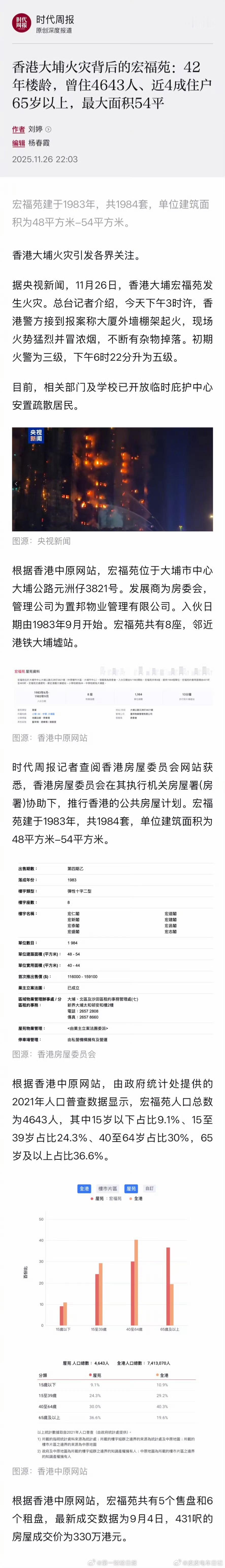 结合我之前去过香港的经验,这次的火能烧这么大,主要有3个原因:一是直到现在,香港那边还在用风干后的竹子制成的脚手架来进行外墙的维修啥的,竹子嘛,你们知道的,本就是易燃物,一烧起来,就很难停得下来。二是香港的屋邨,其实挺像城中村的握手楼,连成一片,且香港的居住密度,放眼世界都能排得上号。三是香港高楼密度很高,超过100米的建筑数,更是排世界第一,万一烧到中部和顶部,救火难度那是相当高~刚看到最新的新闻,深圳那边都派了一堆消防车过去支援了,希望早点控制好火情,降低损失。图源网络,侵删香港火灾深圳消防支援香港