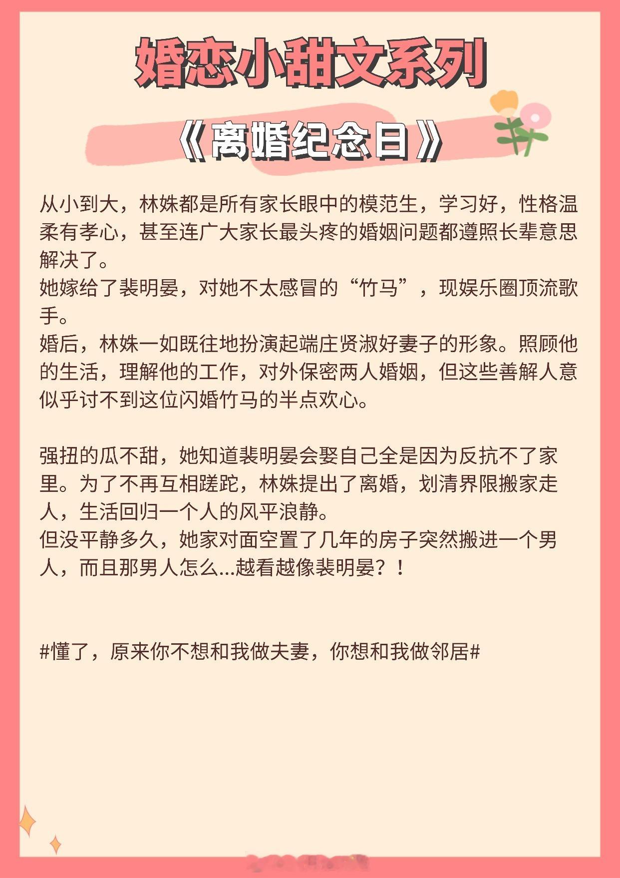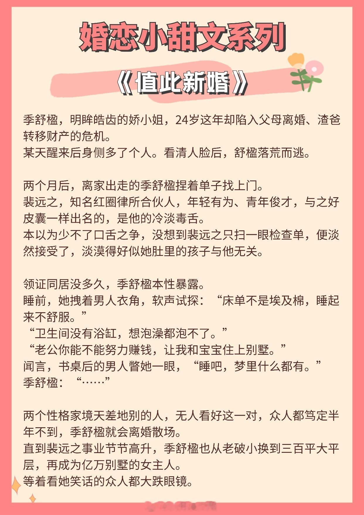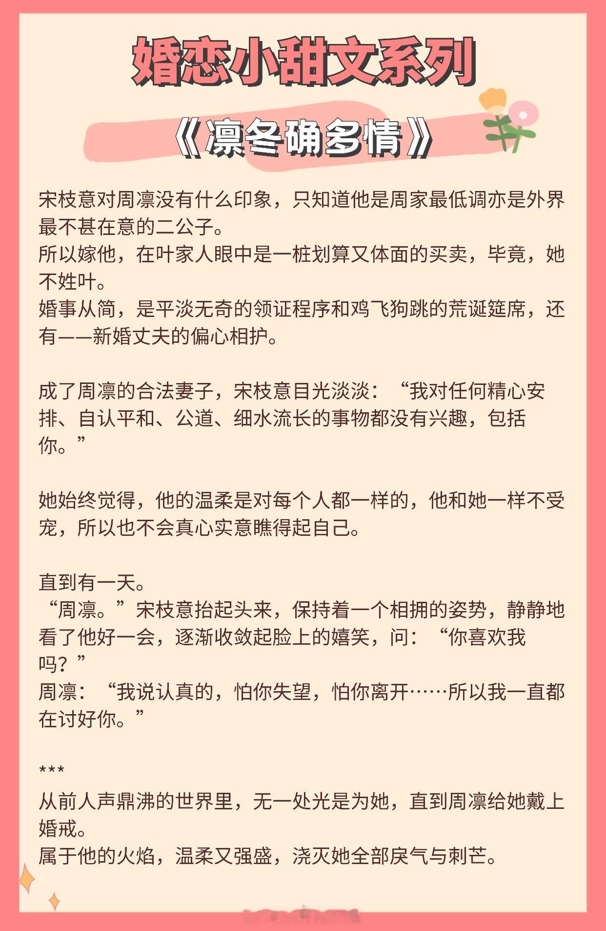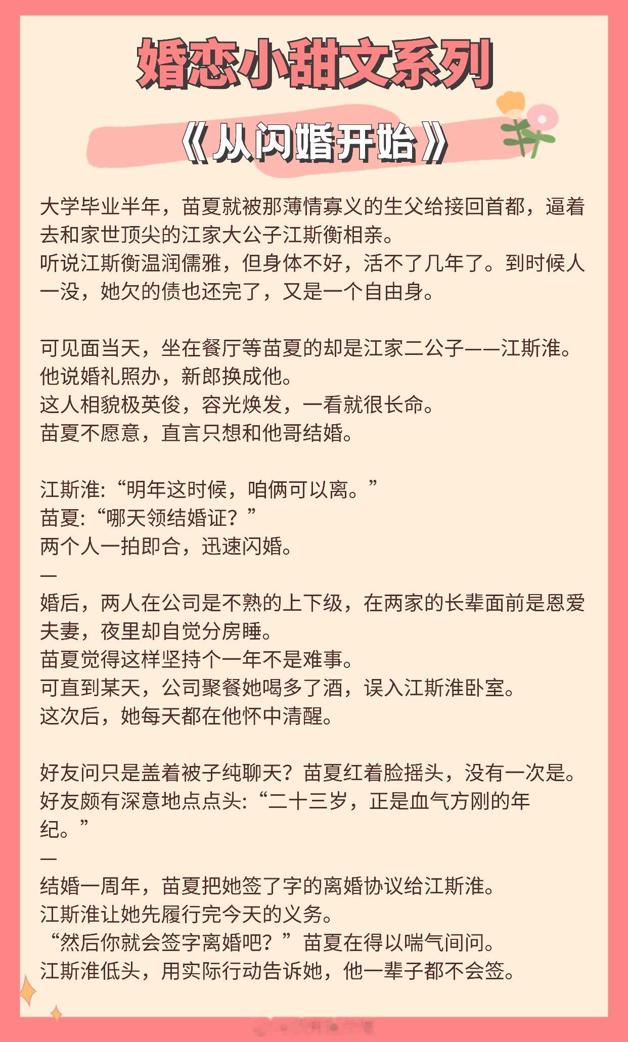 【婚恋小甜文】我从不懂何为心动,直至遇到你。《似是风雪故人归》作者:北途川《值此新婚》作者:归雪笺《从闪婚开始》作者:排骨辣酱《试婚游戏》作者:应雨竹《招月》作者:俞览《离婚纪念日》作者:零砚《婚后成瘾》作者:若诗安轩《满分心动》作者:丛梨《凛冬确多情》作者:随以推文言情小说推荐推文