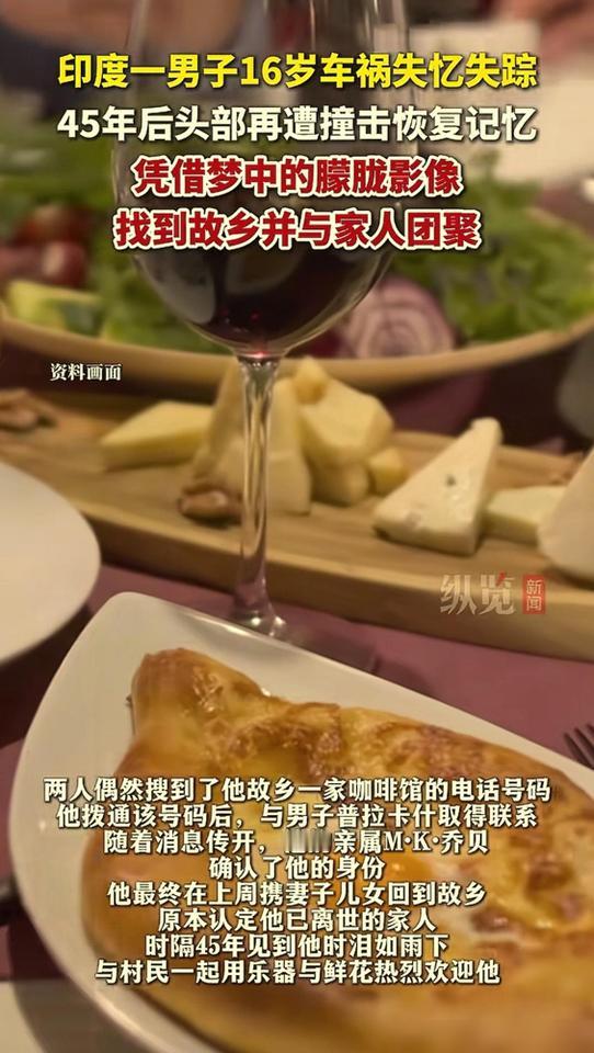 太不可思议了!印度一位61岁男子的经历,比最狗血的电视剧还离奇。16岁车祸失忆,连名字都忘了,在陌生地方娶妻生子;45年后头部再受撞击,丢失的记忆突然“重启”,这才想起自己还有老家和亲人。 以前总觉得“失忆”“记忆恢复”是编剧编出来赚眼泪的,没想到现实里真有这种医学奇迹。听着像天方夜谭,但细想又觉得合理——人的大脑太复杂了,有些记忆可能只是被“封存”,遇到某个契机就突然“解锁”。 最戳心的还是亲情。45年啊,从少年到白发,里基以为家人早忘了他,可老家村民用鲜花和乐器欢迎他的样子,哪像是等了半个世纪?家人的牵挂,大概真的会刻在骨子里,不管隔多远、多久,都在等你回家。 这事儿看着离奇,却让人心里暖暖的。生活总爱给人出其不意的考验,但也藏着不期而遇的惊喜。就像里基,丢了45年的记忆找回来了,更珍贵的是,丢了45年的“根”也找到了。