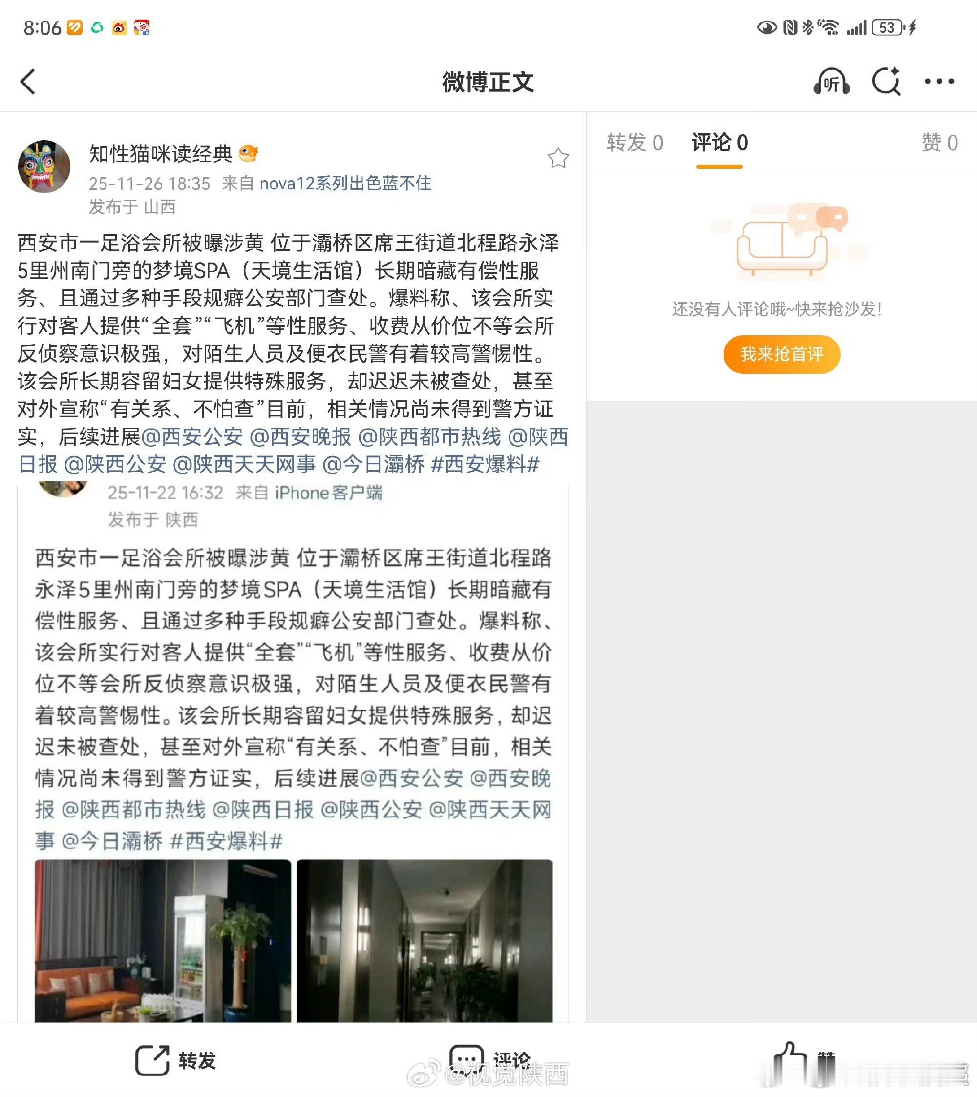 陕西身边事舆情在线播报西安市一足浴会所被曝涉黄 位于灞桥区席王街道北程路永泽5里
