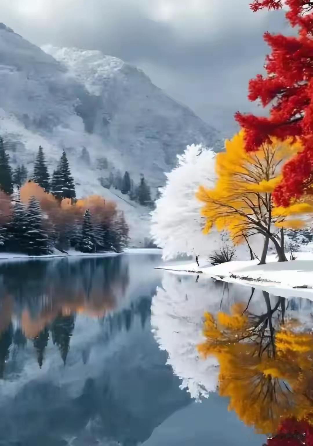 七律· 冬日吟咏 文/理想 冬日琼花漫舞飞,朔风瑟瑟穿枫林。 冰河波静鱼无语,翠