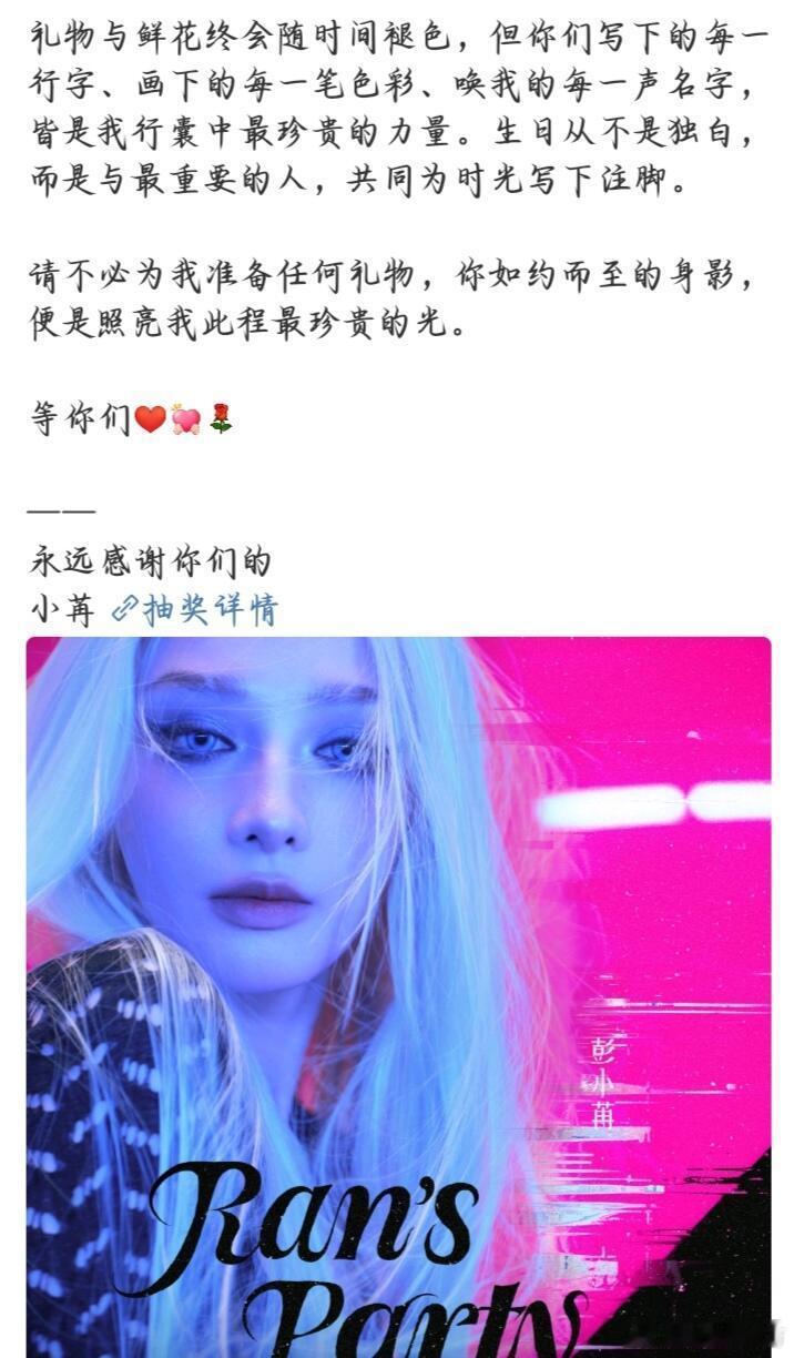 我天 怎么会有如此真诚的彭小苒“请不必为我准备任何礼物 你如约而至的身影 便是照亮我此程最珍贵的光”