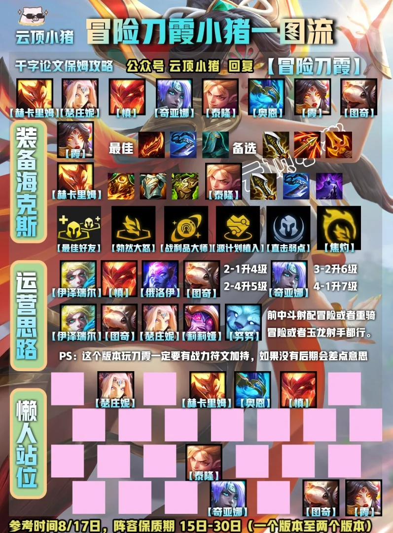 [萌萌哒R]不过这个版本的刀霞能登顶或者吃分(前四)是有相应前置条件的,一定要满足前置条件去玩才容易吃分。