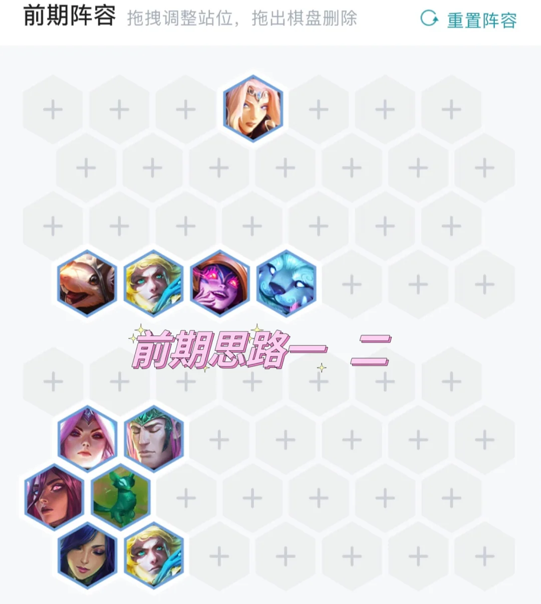 前期思路一般是重骑配冒险射手或者玉龙护卫射手也行,具体看嫖牌,哪种前排二星用哪个体系比较科学。