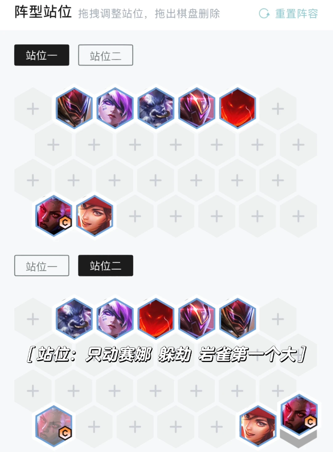 前排有鸟盾挨着放一堆,一般就送赛娜的位置就行了。打劫需要躲劫,打武器就和武器放同侧,打岩雀前排分散点站位,赛娜不能吃到第一个大招。