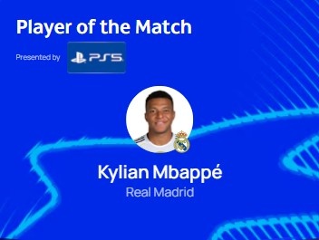 大四喜!姆巴佩当选皇马4-3奥林匹亚科斯一役全场最佳