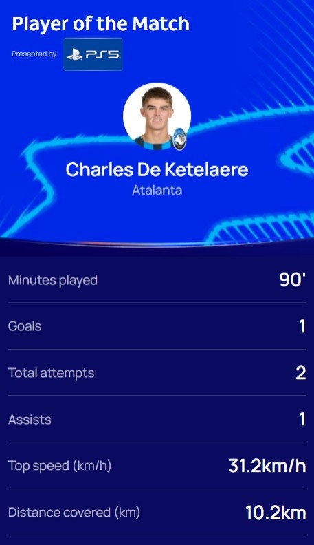 传射建功,欧冠官方:德凯特拉雷当选亚特兰大3-0法兰克福最佳
