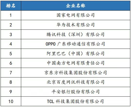 中国企业专利创新百强榜top10