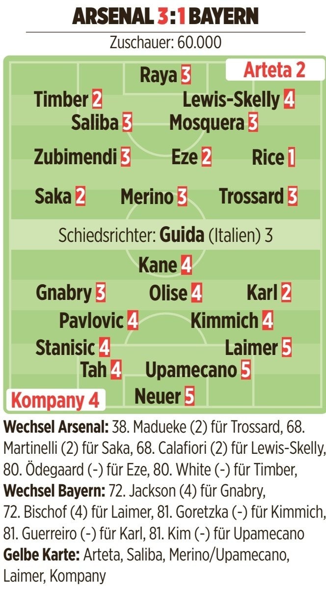直播吧11月27日讯拜仁在本轮欧冠客场1-3不敌阿森纳,《图片报》在赛后为两队将帅评分。