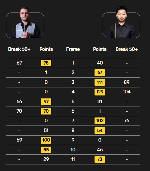 值得一提的是,这是吕昊天连续两轮6-5险胜过关。在80进48轮次,吕昊天1-5落后马修-史蒂文斯,打出五连鞭完成逆转。