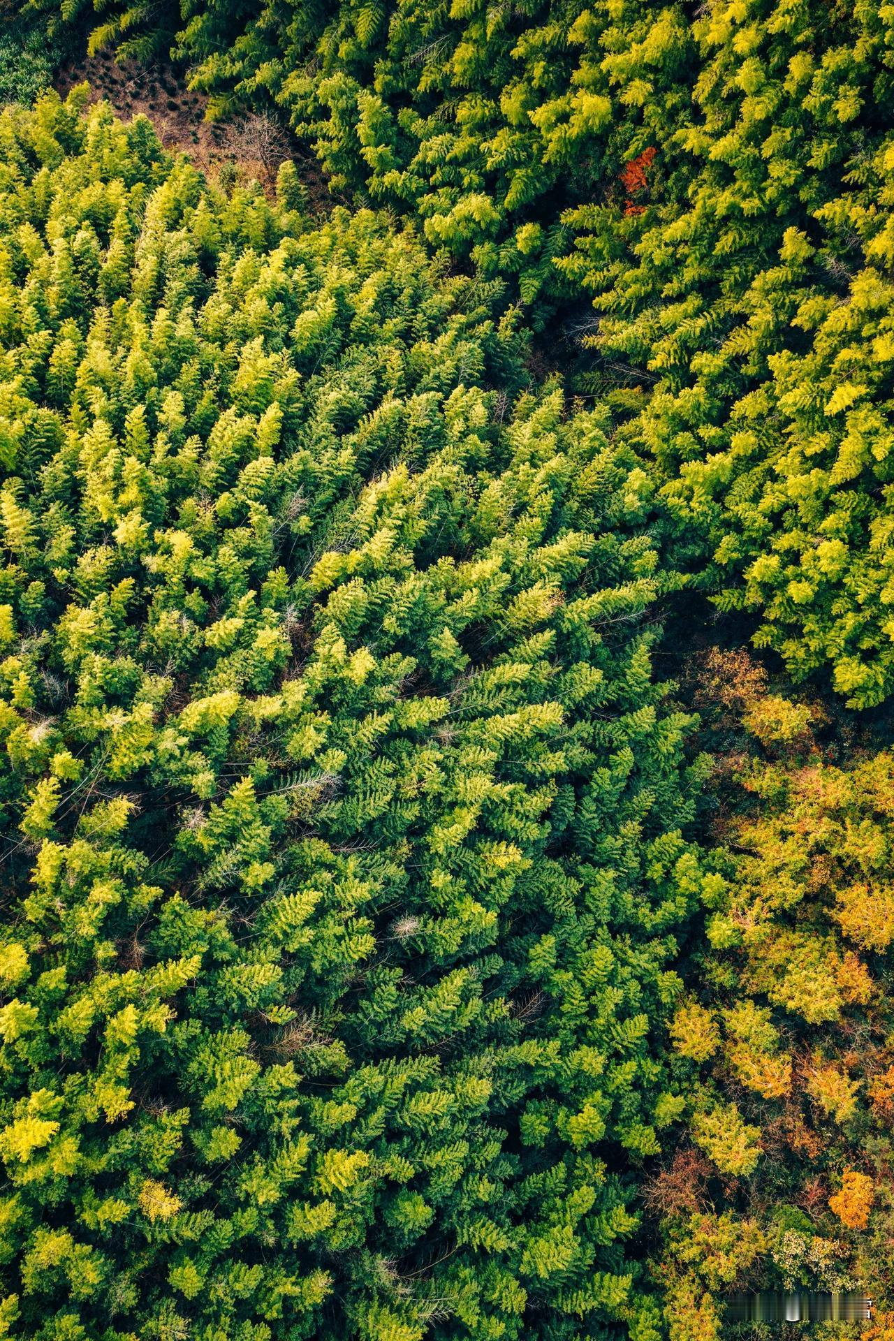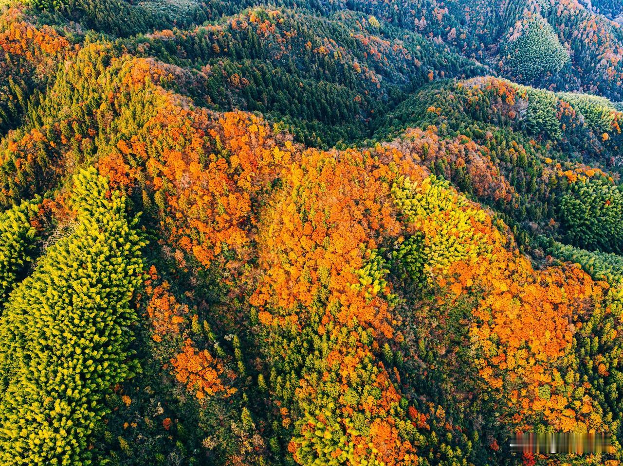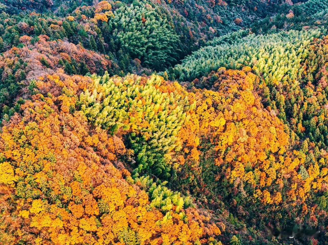 现在黄山最美的彩林竟然不在黄山景区里面,而是在黄山南大门外对着的山头。 黄山山上已无秋色,黄山几乎都是有松树为主,临近云谷寺的一段已经完全落叶。但没想到景区外的山头竟然如此艳丽。 航拍可见这座位于国道G205山深线与G3京台高速之间的山植被非常丰富,树林呈现五彩斑斓的色彩。有没人知道这座山叫什么名字?