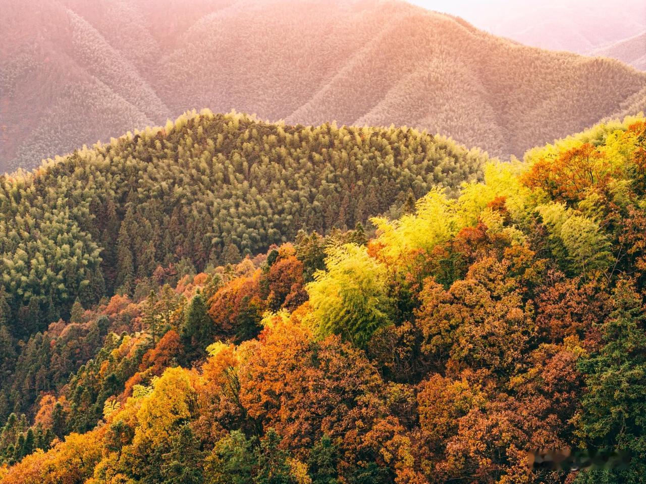 现在黄山最美的彩林竟然不在黄山景区里面,而是在黄山南大门外对着的山头。 黄山山