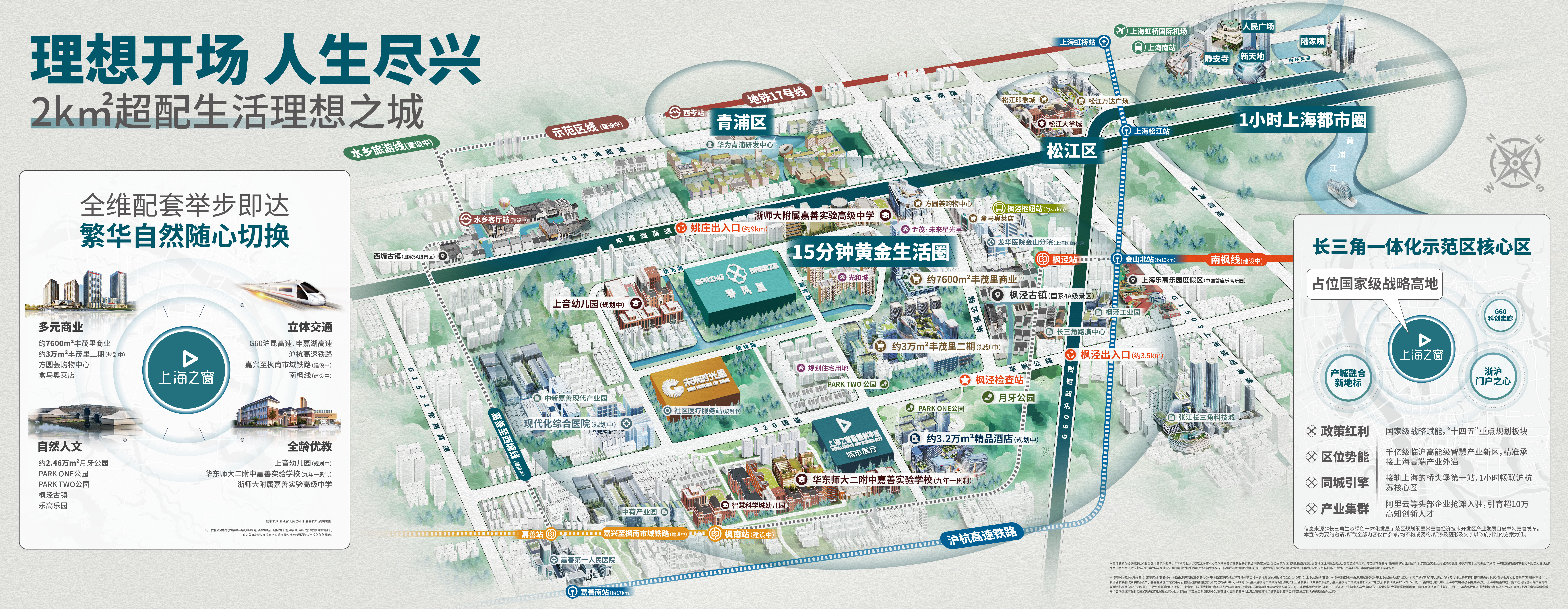 金茂上海之窗以其独特的区位价值,重新定义了沪浙交界处的生活可能。项目与上海枫泾古镇举步可达,实现了“一步上海”的地理跨越,让长者随时享受古镇漫步的闲适,同时与建设中的上海乐高乐园度假区仅十分钟车程,为亲子家庭打造了周末度假的新去处。