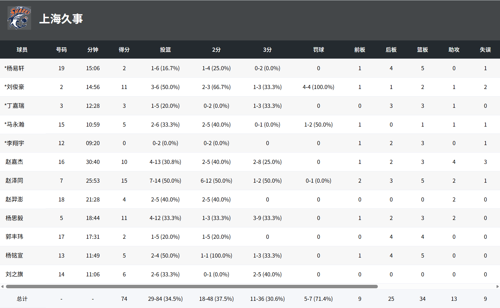 上海U19男篮:赵泽同15分、刘俊豪11分、杨思毅11分