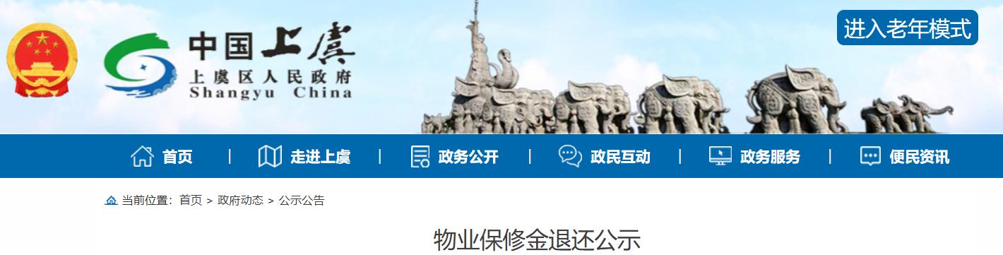 近日绍兴市上虞区人民政府发布了一则《物业保修金退还公示》: