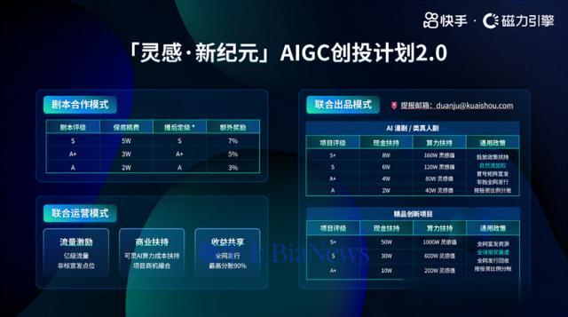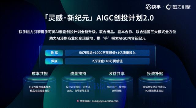 一方面,快手磁力引擎携手可灵AI推出“灵感·新纪元”AIGC创投计划2.0,通过联合出品、剧本合作、联合运营三大模式,从剧本、制作、成片、发行全链路助力AI漫剧商业化落地,同时提供成本共担、流量扶持、收益共享、投流补贴等支持,帮助漫剧精品内容全网分发、获得可观收益。其中,单项目最高可获50万现金、千万灵感值、亿级流量扶持。