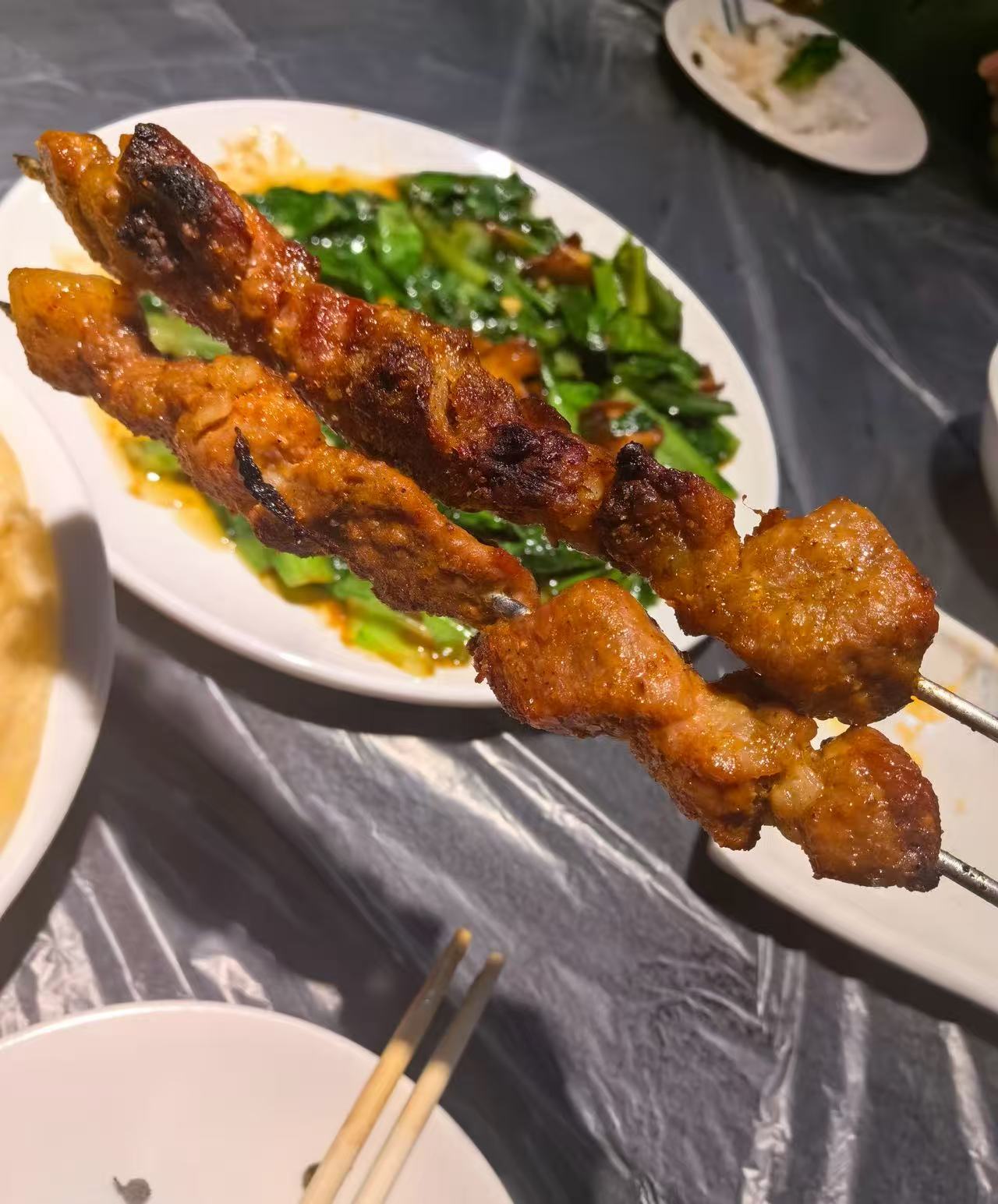 3️⃣.电烤羊肉串,现串的大块羊肉,烤制得肥瘦均匀外焦里嫩。