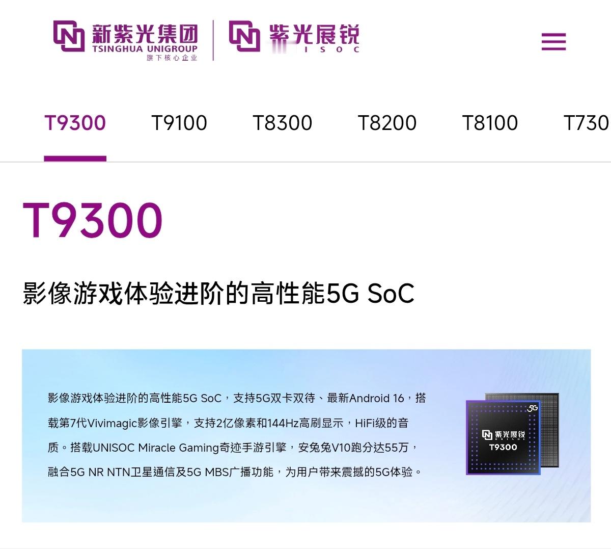 紫光展锐T9300,2×A78,2.4GHz + 6×A55,2.2GHz,Ma