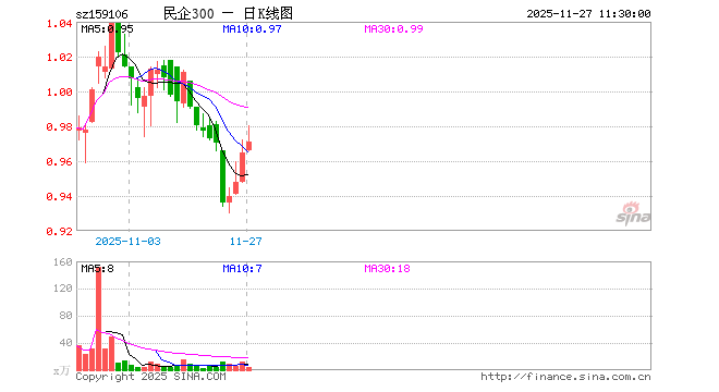 11月27日,截止午间收盘,民企300ETF(159106)涨0.62%,报0.971元,成交额468.60万元。民企300ETF(159106)重仓股方面,宁德时代截止午盘跌0.29%,美的集团涨0.73%,东方财富涨0.21%,新易盛涨5.53%,恒瑞医药跌0.42%,立讯精密涨0.75%,比亚迪跌0.43%,中际旭创跌0.79%,寒武纪涨1.98%,阳光电源涨1.27%。