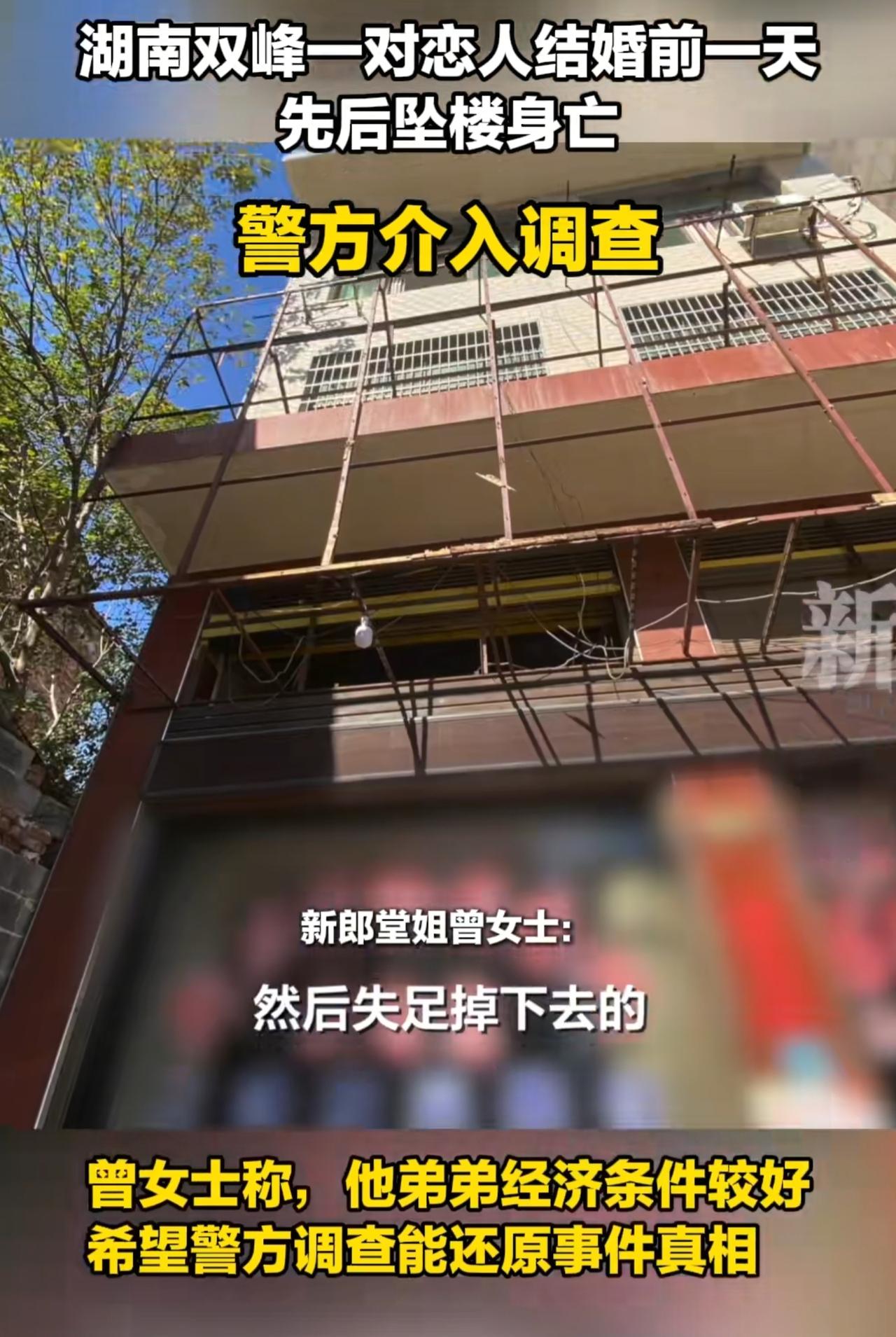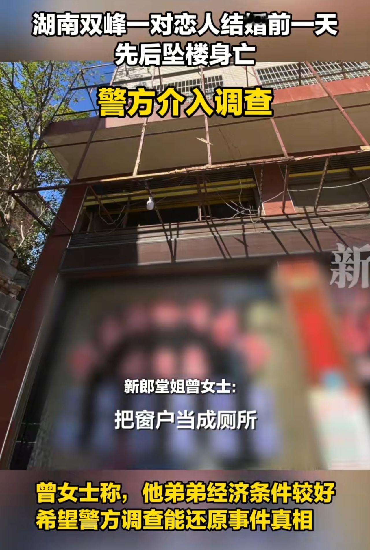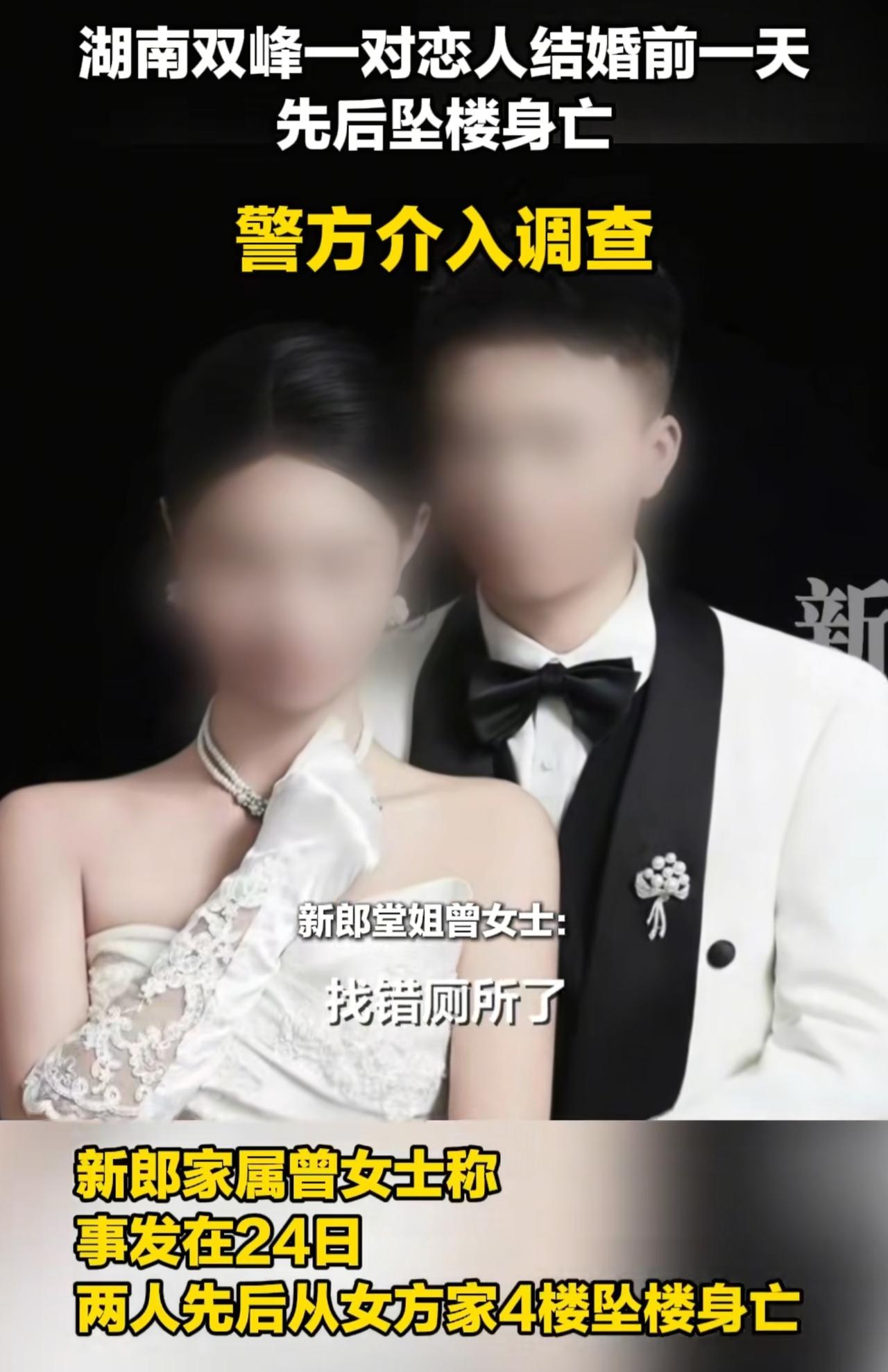 对于湖南双峰一对新人跳楼一事,我感觉下面这个解释,是最符合常理的了。 据新郎堂姐的描述中提到,凌晨两点的时候,二人和朋友相聚饮酒后,回到女方家中休息。凌晨5:04分,男方使用微信拨打视频电话给女方,第一次显示未接通,第二次接通后,通话时间仅为4秒,这短短的4秒时间却是至关重要的。 据了解,男方在聚会上喝了酒。凌晨5点左右,男方出门上厕所,误把窗户当做厕所门,失足坠落了下去。要知道,一个人在醉酒的状态下是没有清醒意识的,是极有可能做出这样的事情的。 那两个电话,可能就是男方在坠楼之后发出的求救信号,但是女方当时太困了,以至于没有听清楚男方说的话便匆匆的挂掉了电话。第二天一早,看到躺在地上没了呼吸的男友,女孩万念俱灰,后悔当时没能醒来及时发现男友,在绝望之中选择了为爱殉情。 一对苦命的鸳鸯啊,两个人原本可以拥有美好的未来的,却在一夜之间全部灰飞烟灭了。两人共同经营的早餐店门口,还挂着大红的“囍”字呢。