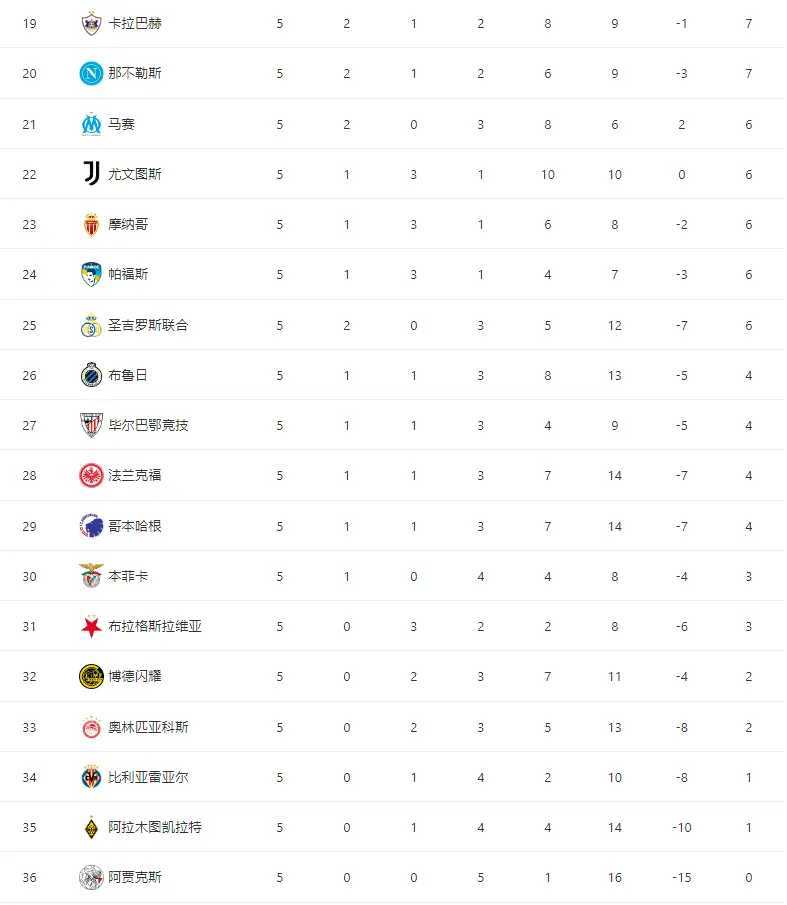 欧冠第五轮积分榜大洗牌:阿森纳全胜登顶 多豪门格局生变欧冠联赛 北京时间11月2