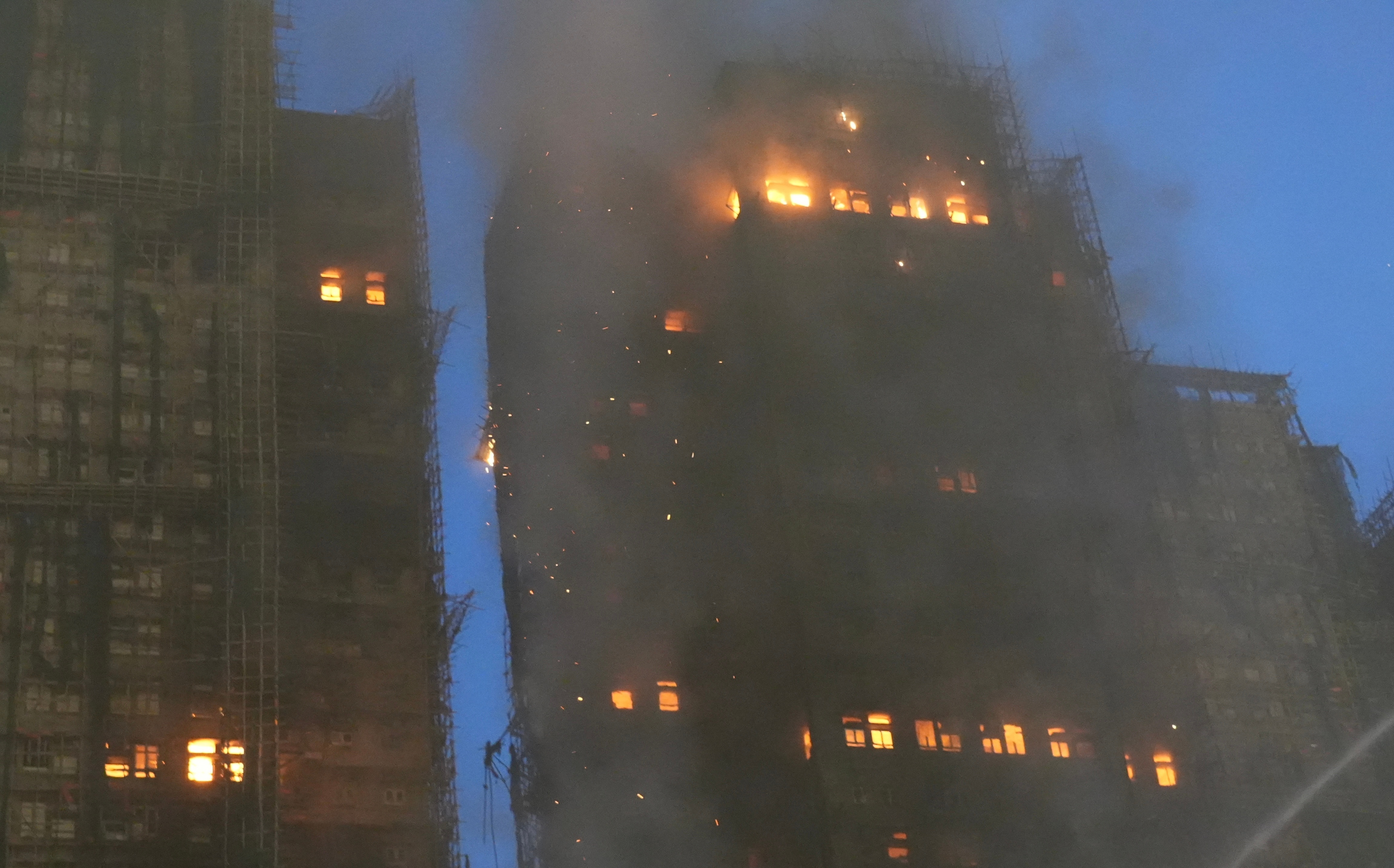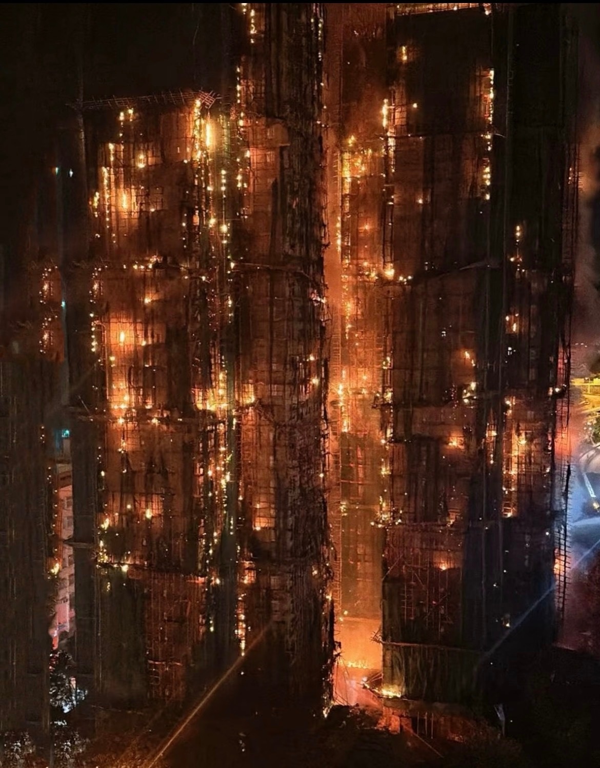 香港火灾已致44人遇难烧了整整一夜,通红的那种,非常恐怖,本次涉及8栋大楼,只有一栋没怎么波及!经过一夜两地力量紧急救援,目前有4栋住宅火势控制住了,3栋还在努力控制,逮捕了3人,涉嫌犯罪,牺牲的人当中有一名消防员!火势迅速蔓延原因可能是因为外部竹架!等具体调查通知说实话,我个人每次出差住高楼就慌的一匹,与生俱来的那种怕,真的是怕发生如今这种,根本逃不掉,愿平安