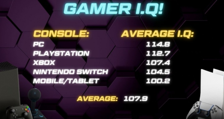 直播吧11月27日讯日媒Kultur发布《按游戏和游戏硬件划分的平均用户智商》一文,表示测试了1010名18岁及以上的玩家,涵盖四个领域:口头交流、数学、逻辑和视觉推理,以及计算智商。