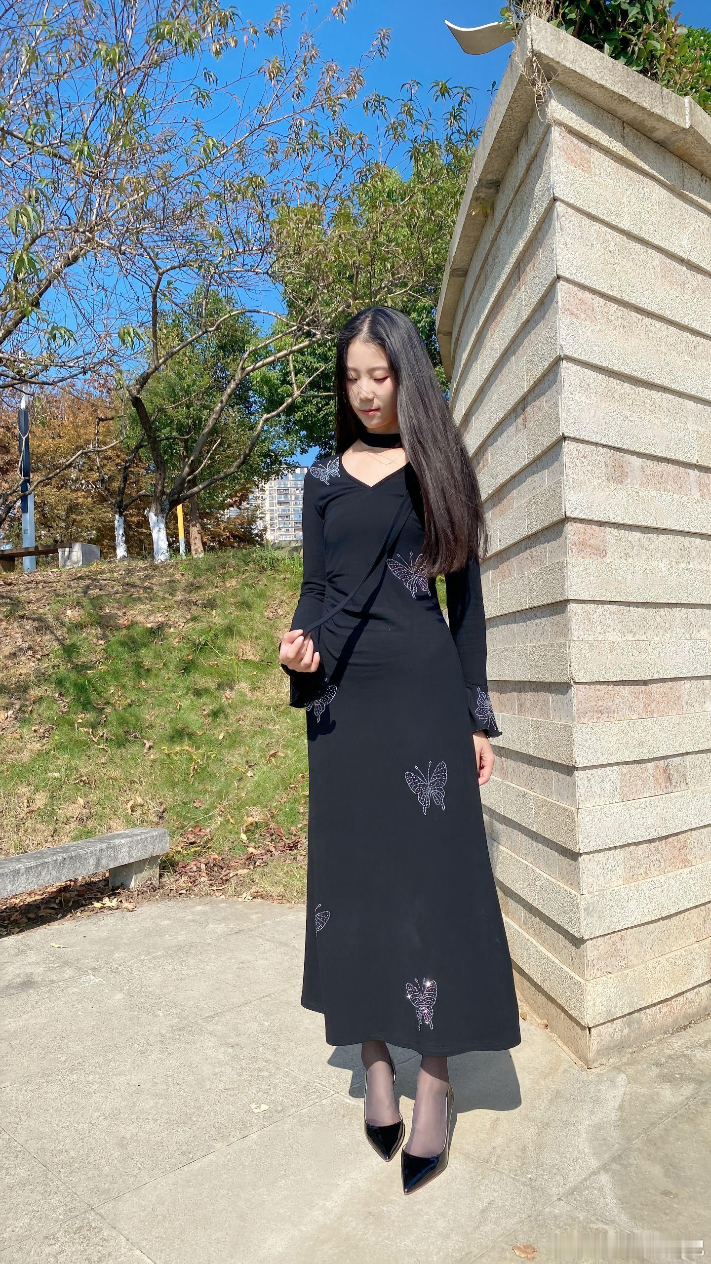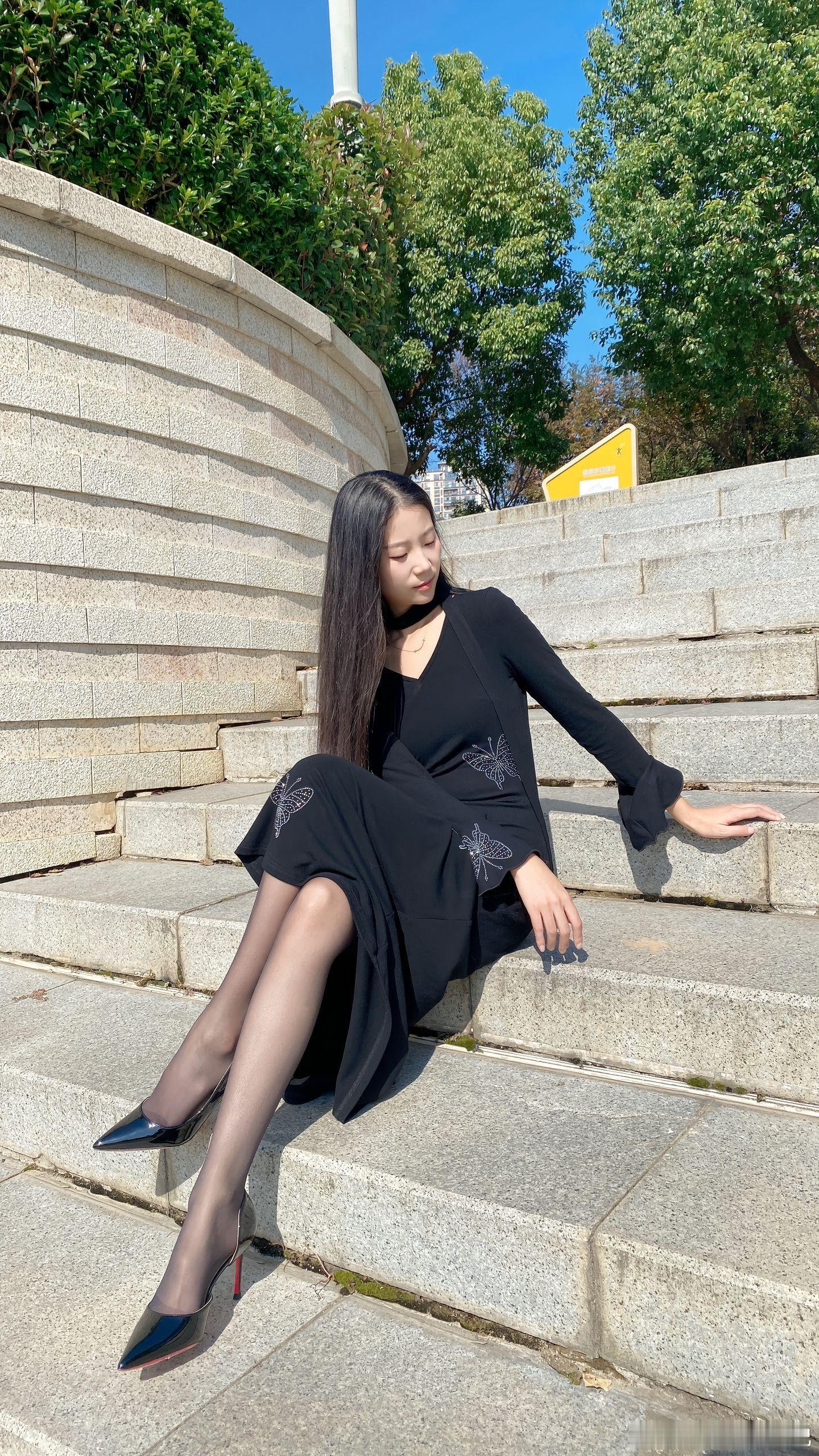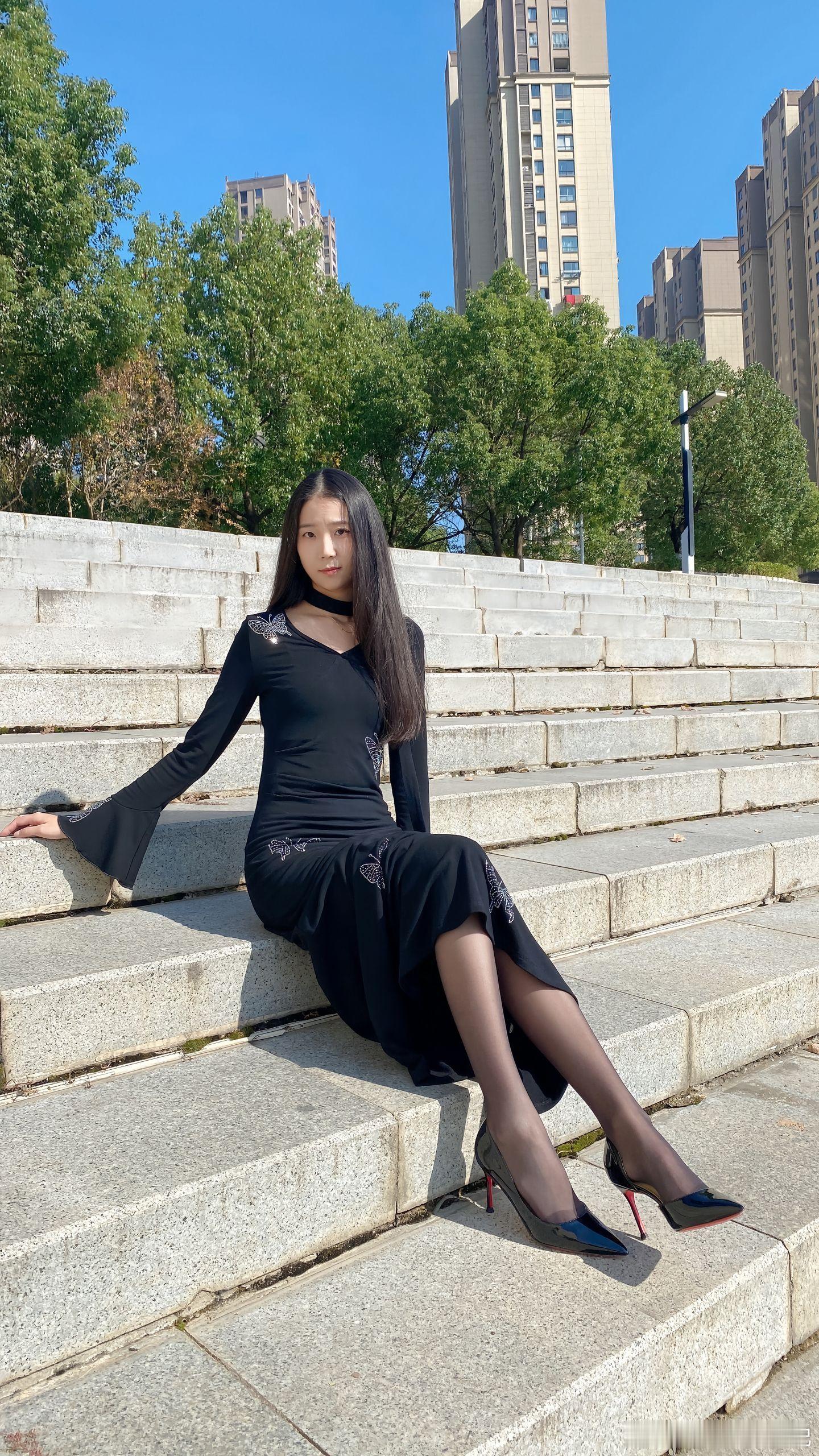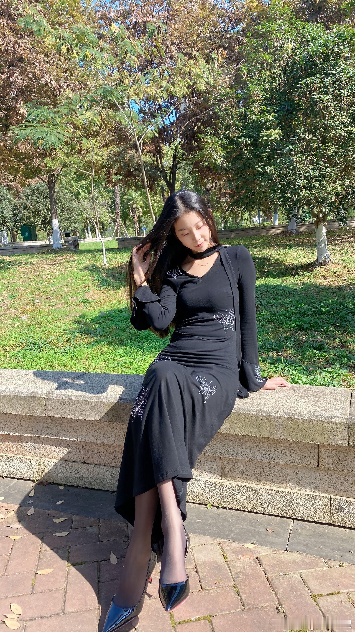 轻熟女神范儿 黑色连衣裙美女绘梦长廊