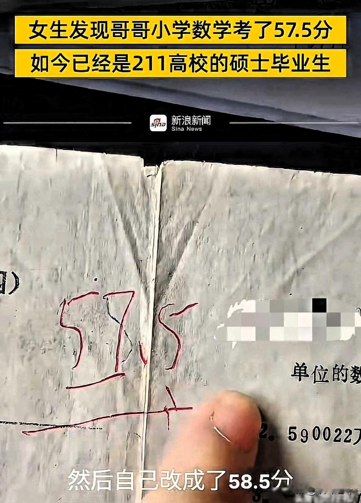 家长不要焦虑了!广东一位家长收拾老物件时,意外翻出哥哥1999年的小学数学试卷——57.5分的成绩,字迹歪歪扭扭几乎认不出来 可谁能想到,当年的“学渣”,如今竟逆袭成211高校毕业生,在单位里独当一面!这事儿一传到网上,瞬间戳中了无数焦虑的家长,评论区里一片感慨:“原来学霸小时候也考不及格,我对孩子又有信心了!” 现在的家长,简直被“分数”绑架得喘不过气。孩子考差一分,就慌得整夜睡不着,报满补习班、刷题到深夜,非要逼孩子“赢在起跑线”。 可孩子的成长,从来不是“一考定终身”。我初中同学中考连重点高中都没考上,现在搞编程,月薪比不少重点大学毕业生还高;邻居家孩子小学奥数拿奖,长大后连Excel公式都弄不明白,反而对工作失去了兴趣。 成绩只是阶段性的“学习反馈”,不是给孩子贴“学渣”“学霸”标签的“判决书”。就像小区李奶奶说的,庄稼长得快不等于熟得透,稻穗低着头才是真成熟。 孩子小时候成绩差,未必是坏事,那些磨出来的耐心、培养的兴趣,反而可能成为未来的底气。我小学数学曾三次不及格,我爸从不指责,只说“没学会就再学一遍”,这份包容,让我后来做数据工作时能沉下心钻研,反而比很多“学霸”更能扛事。 家长与其盯着分数死磕,不如多给孩子一点耐心和空间。人生是场长跑,起跑慢不代表会落后,那些按自己节奏成长的孩子,往往能走得更稳更远。别总逼孩子“弯道超车”,先问问孩子今天高不高兴,有没有发现新的兴趣,这才是教育最该有的样子。