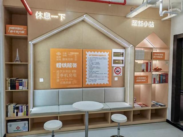 记者走进中广食集工间休息室,简约整洁的环境让人瞬间卸下疲惫。柔软舒适的座椅整齐摆放,营造出静谧惬意的休憩氛围。休息室充分考虑实用需求,为职工配齐基础设施:常温水供应不间断,随手就能接一杯温水舒缓口干,充电插座按需布设,外卖骑手手机没电时可随时充电,解决日常应急需求,同时兼顾整洁与舒适,街道总工会还配备专人定期做好环境清扫消杀,让每一位前来休憩的职工都能安心落座。“以前送餐间隙只能在电动车上凑合休息,现在有了这个‘加油站’,不仅能让身体缓一缓,手机也能‘满血复活’。”一位正在休息的外卖小哥笑着说。据悉,该休息室在夏季高温来临前已投入使用,目前,日均服务超50人次,获得周边从业者广泛好评。严寒来临后,广中路街道总工会还将“上新”更多暖心举措,为往来职工服务。