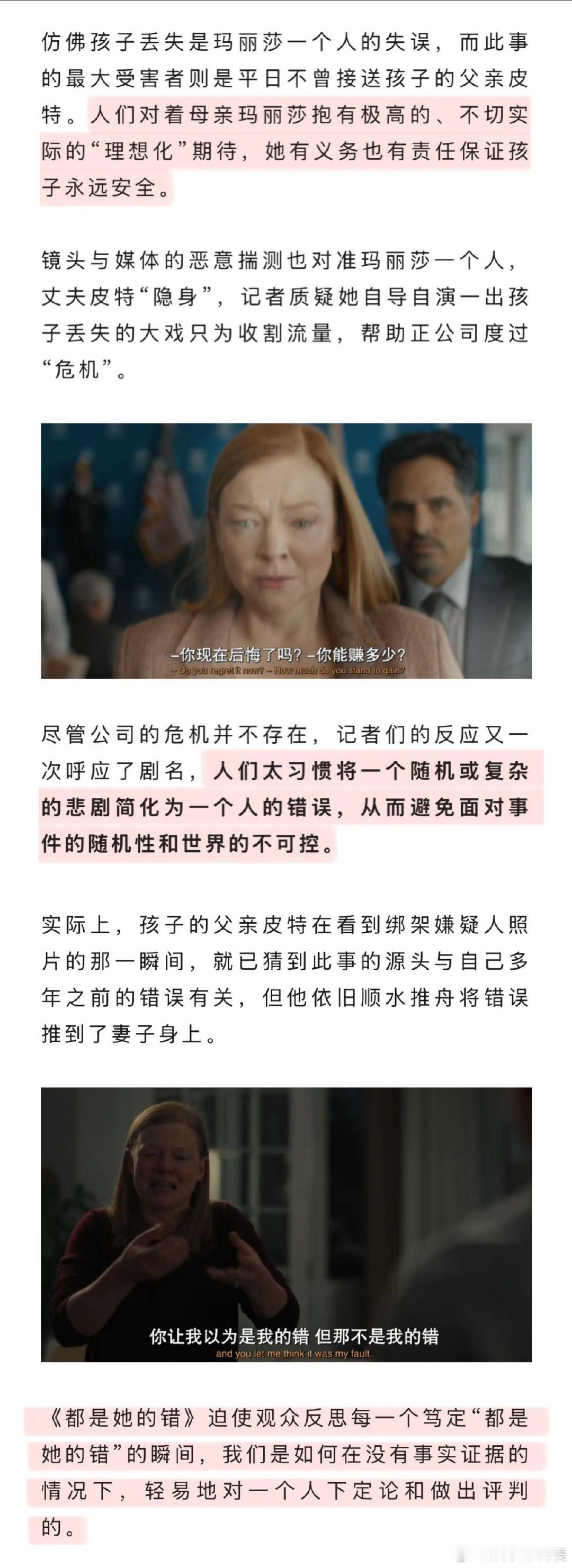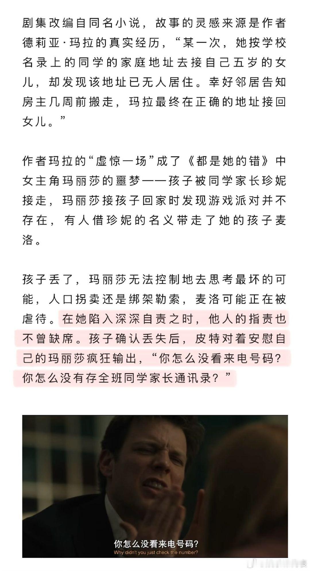 都是她的错灵感源自作者真实经历女性悬疑还可以这么拍《都是她的错》,是一部由女作者撰写,女导演加女编剧影视化改编的全女班底作品。题材是欧美近几年流行的Mom Noir。这类作品以母亲的视角展开,其特点是将犯罪悬疑与社会议题结合,该类型因真实反映当代女性焦虑而引发广泛共鸣。