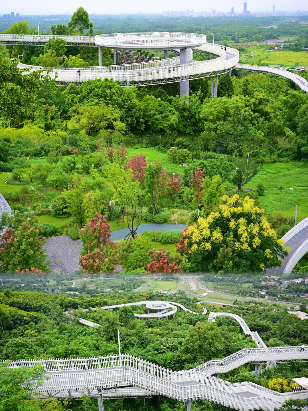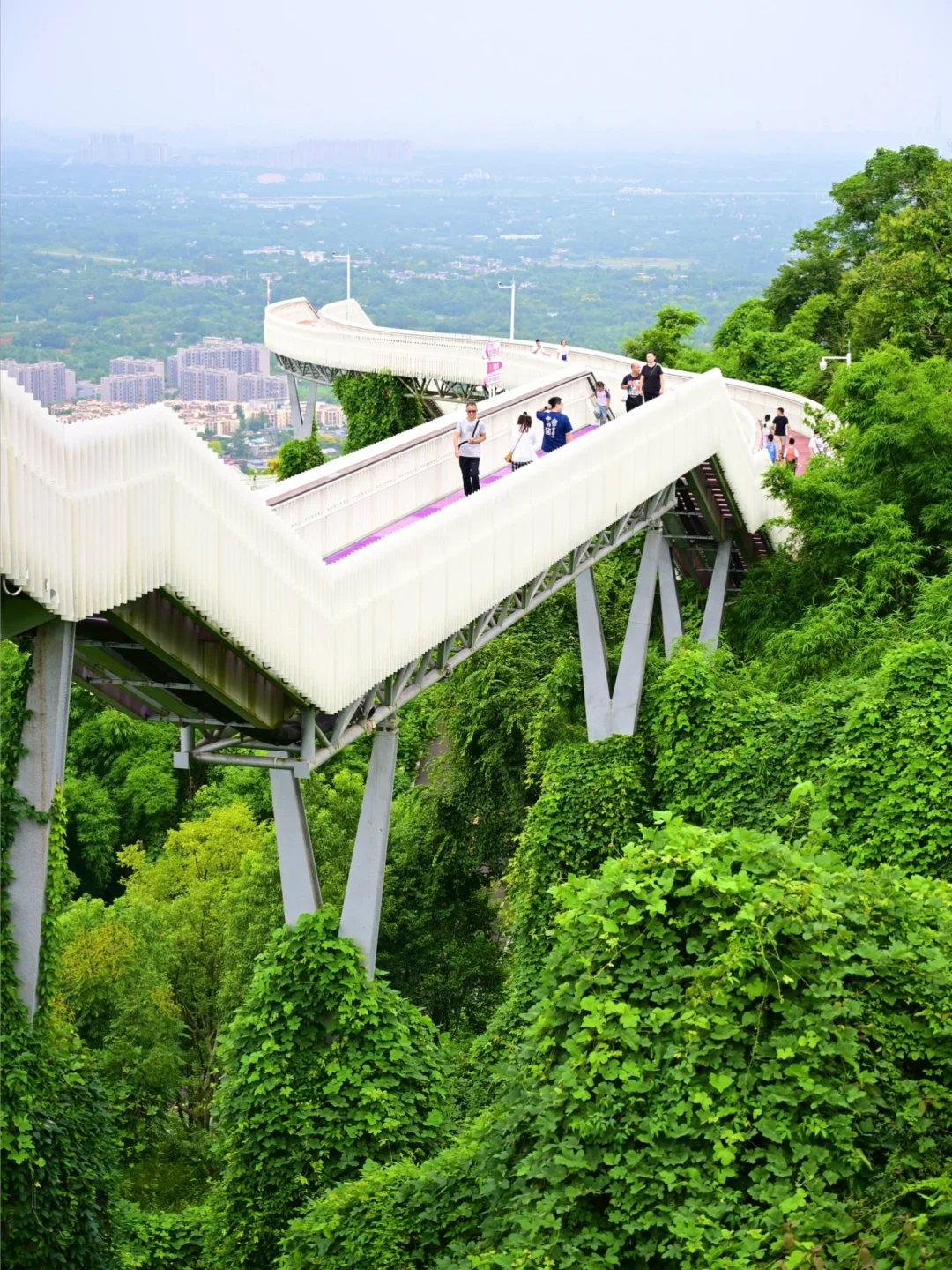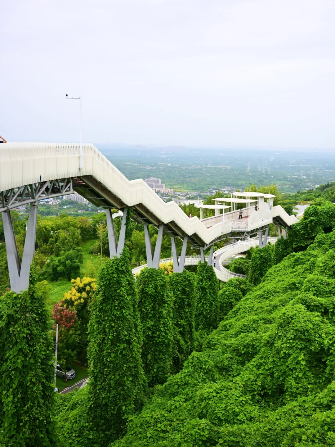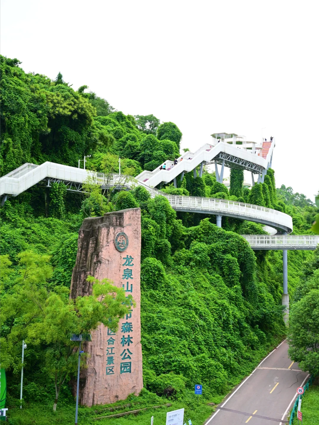 1️⃣导航到龙泉山森林绿道高空栈道遇见广场,大概2h到山顶,上山3㎞,往返6km(下山如果不想原路返回,可以坐公交下山,丹景山有景区专线,一定要注意发车时间)