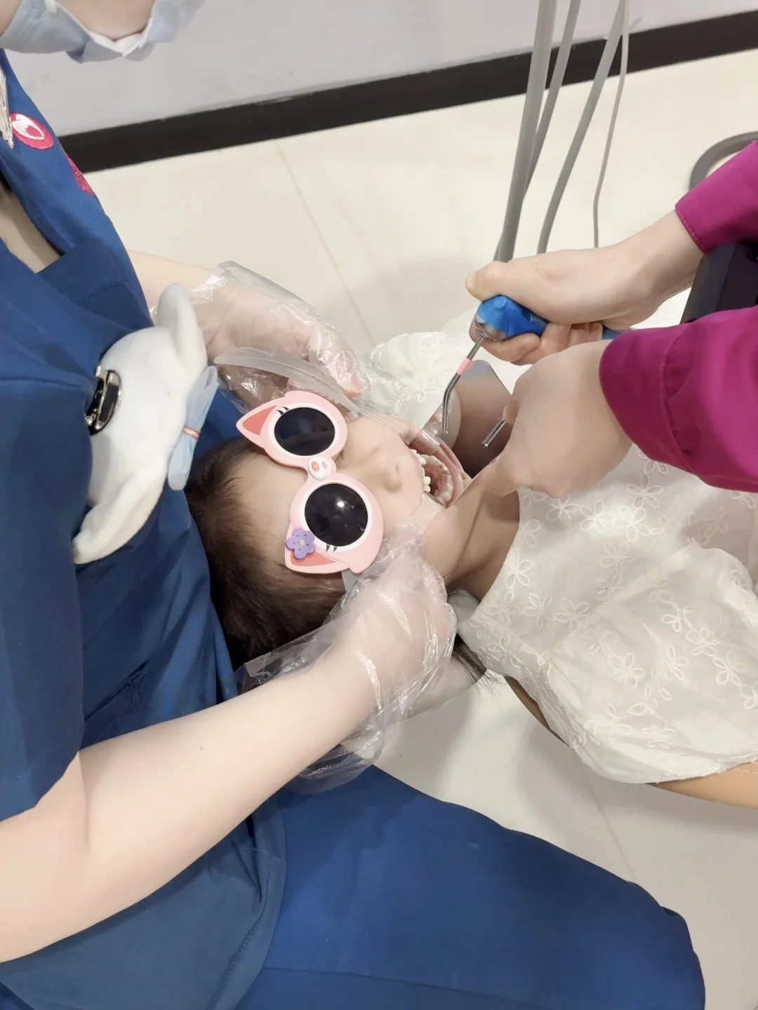 没想到她的团队真的太有耐心了!看🦷的动作轻轻的,还会时不时跟娃互动:“宝宝真棒,再坚持一下下哦”