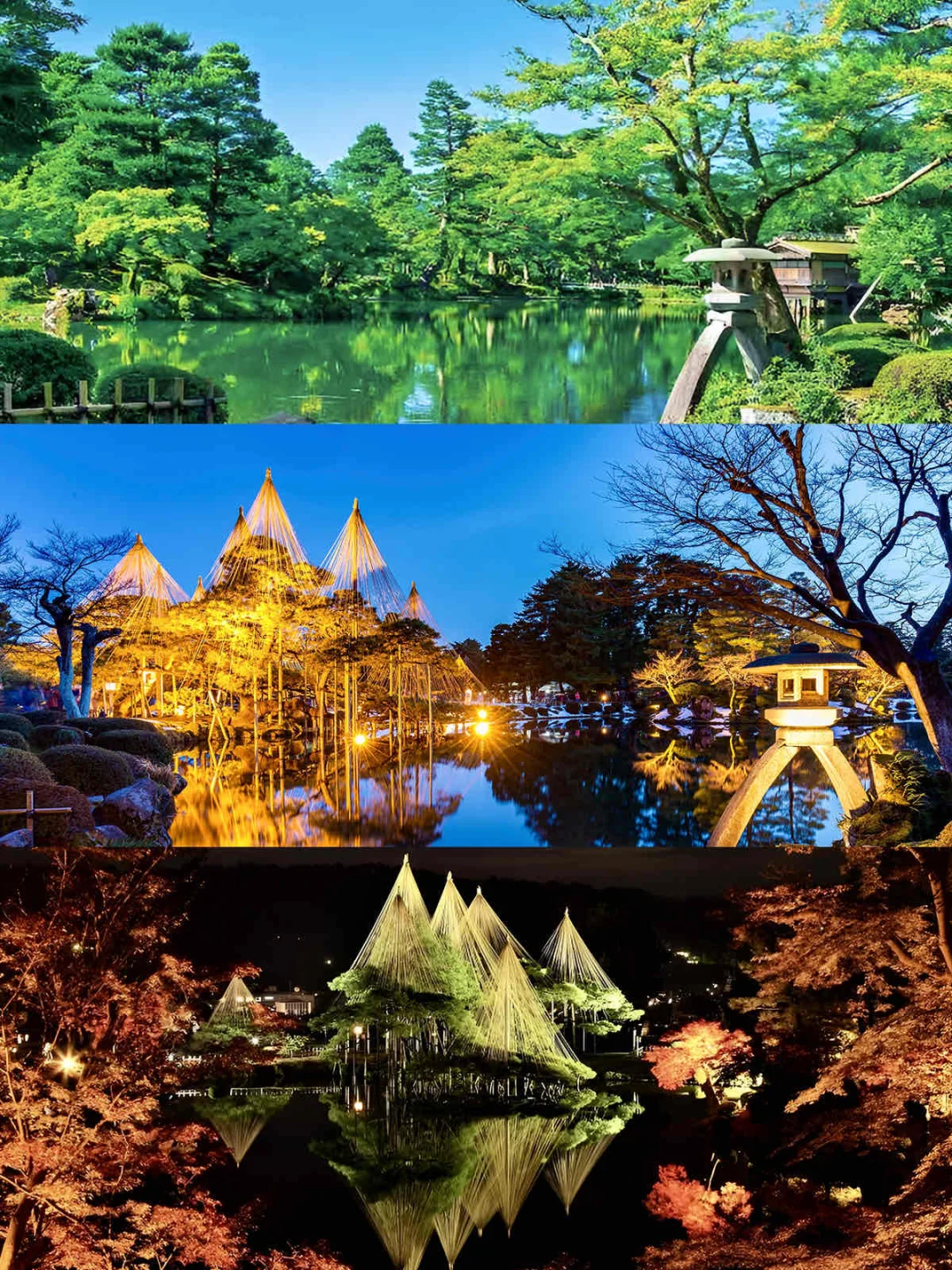 🌈日本三大名园之首的兼六园,四季景色截然不同,春梅,夏花、秋枫、冬雪。只有亲身漫步其中,才能体会不一样的风情。