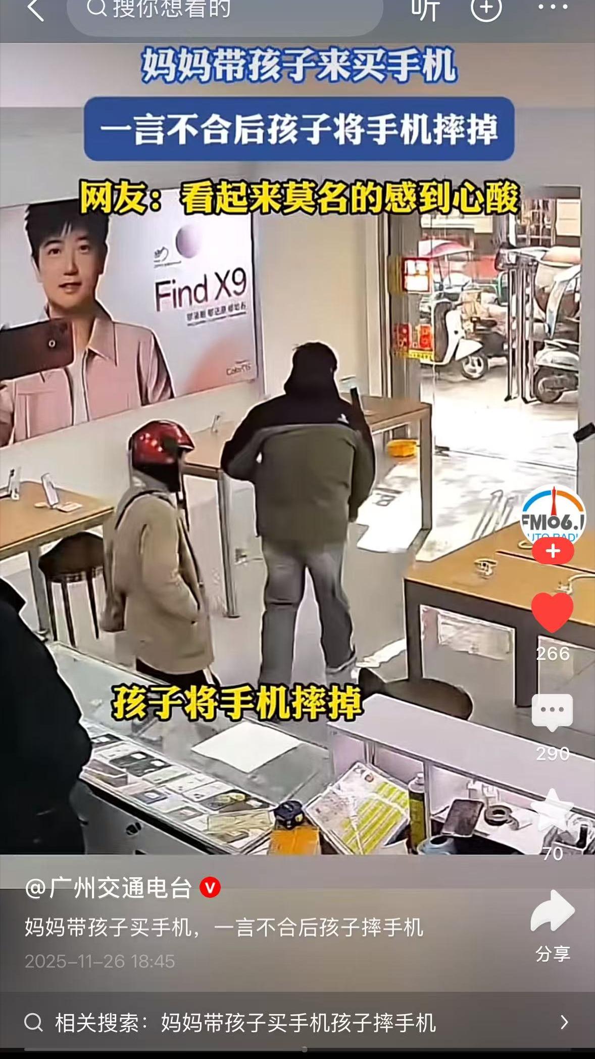 你摔的是手机,疼的可能是妈妈的心。 一位妈妈带孩子买手机,孩子与母亲发生争执,