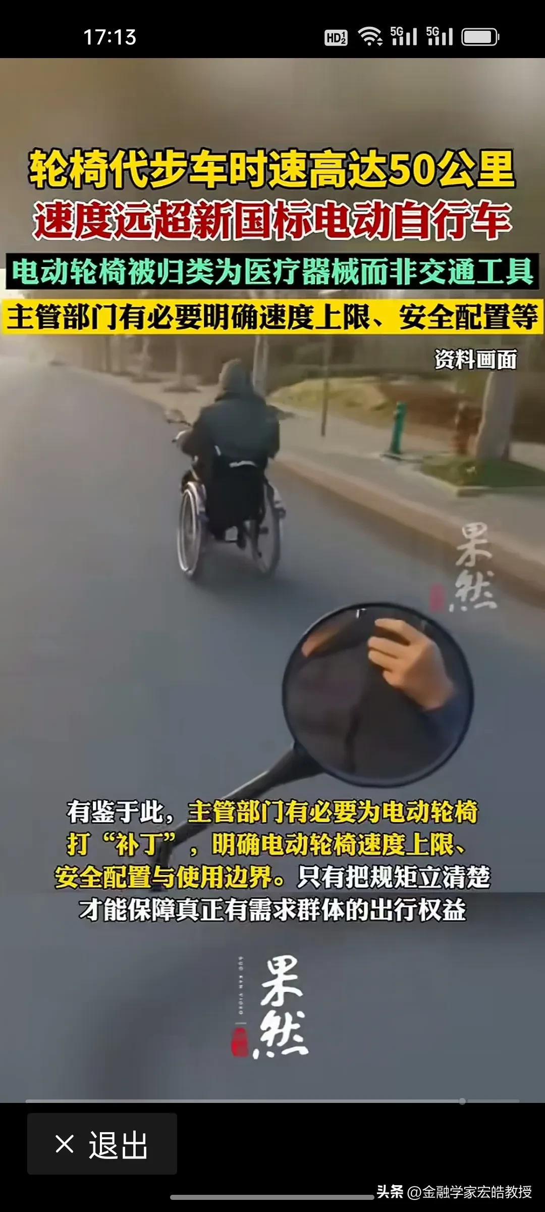 真的是上有政策下有对策!昨天看到上海一条街有很多卖电动自行车的店铺都关门了,因为旧国标的车不让卖,新国标的车也进不到货,今天就看到聪明的博主开始卖电动轮椅了! 现在新国标电动自行车最高时速只能是25千米/时,有网友说在新国标下,通勤时间要增加20多分钟。刚看到有一位博主发视频展示并销售电动轮椅,速度能达到50千米/时,可是这个电动轮椅并非交通工具,而是给走路不便的人使用的医疗器械,希望有关部门还是能明确速度上限,未来满大街都是求时速的年轻人坐着电动轮椅在冲刺,对交通安全存在很大隐患啊!