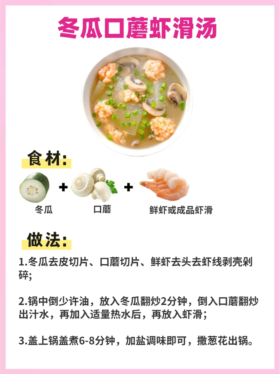 4⃣️冬瓜口蘑虾滑汤——清痰化热、暖胃健脾