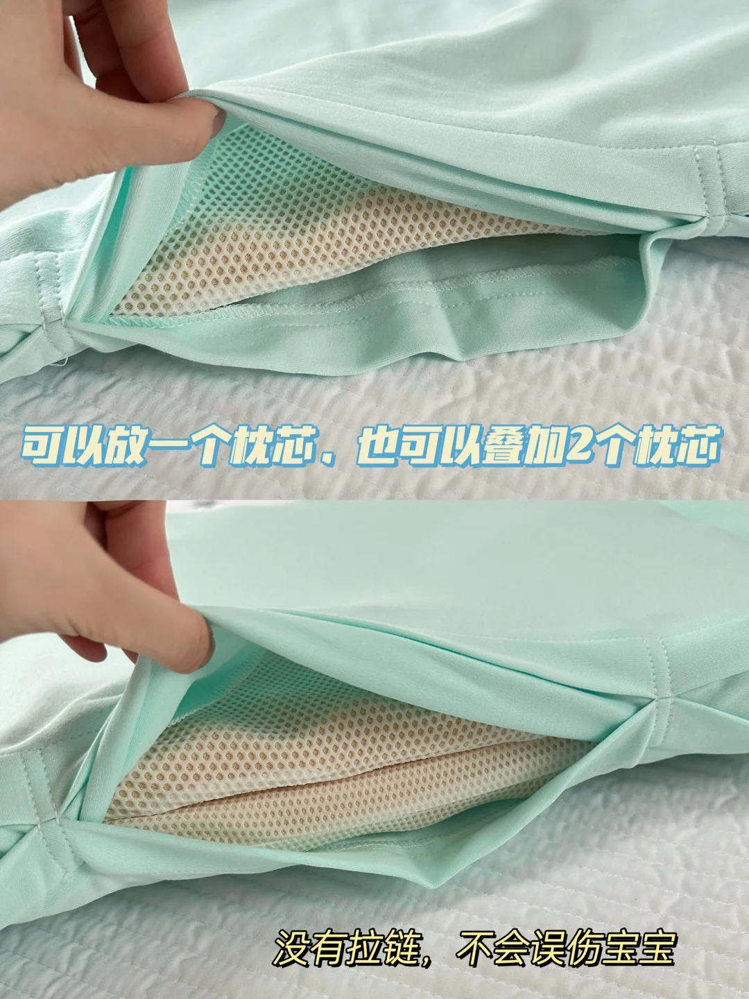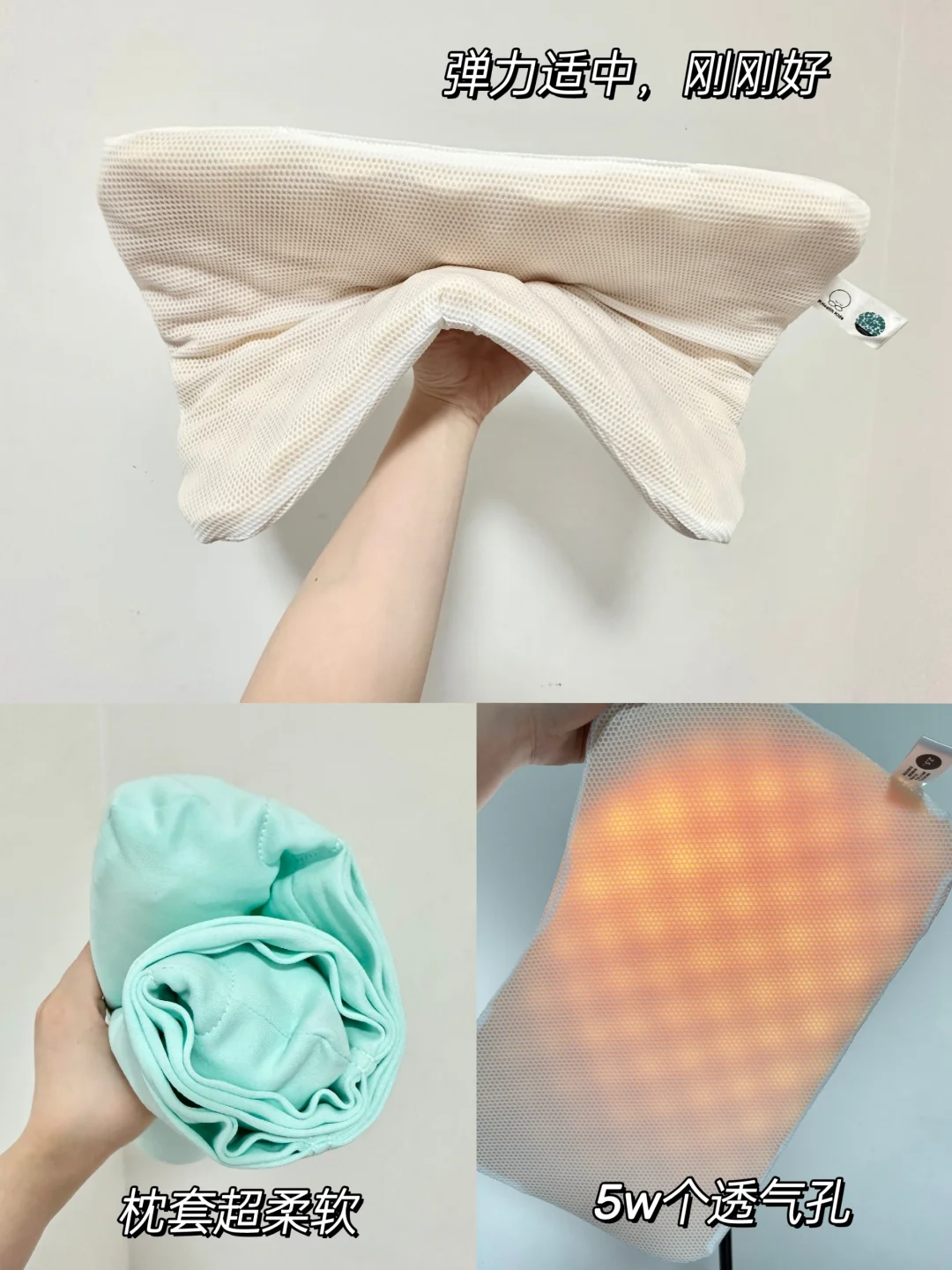 枕芯都是透气孔,睡觉不会闷汗长痱子。硅胶的材质可以水洗晾晒,很适合头部爱出汗的宝宝,脏了就洗,也不会滋生细🦠。